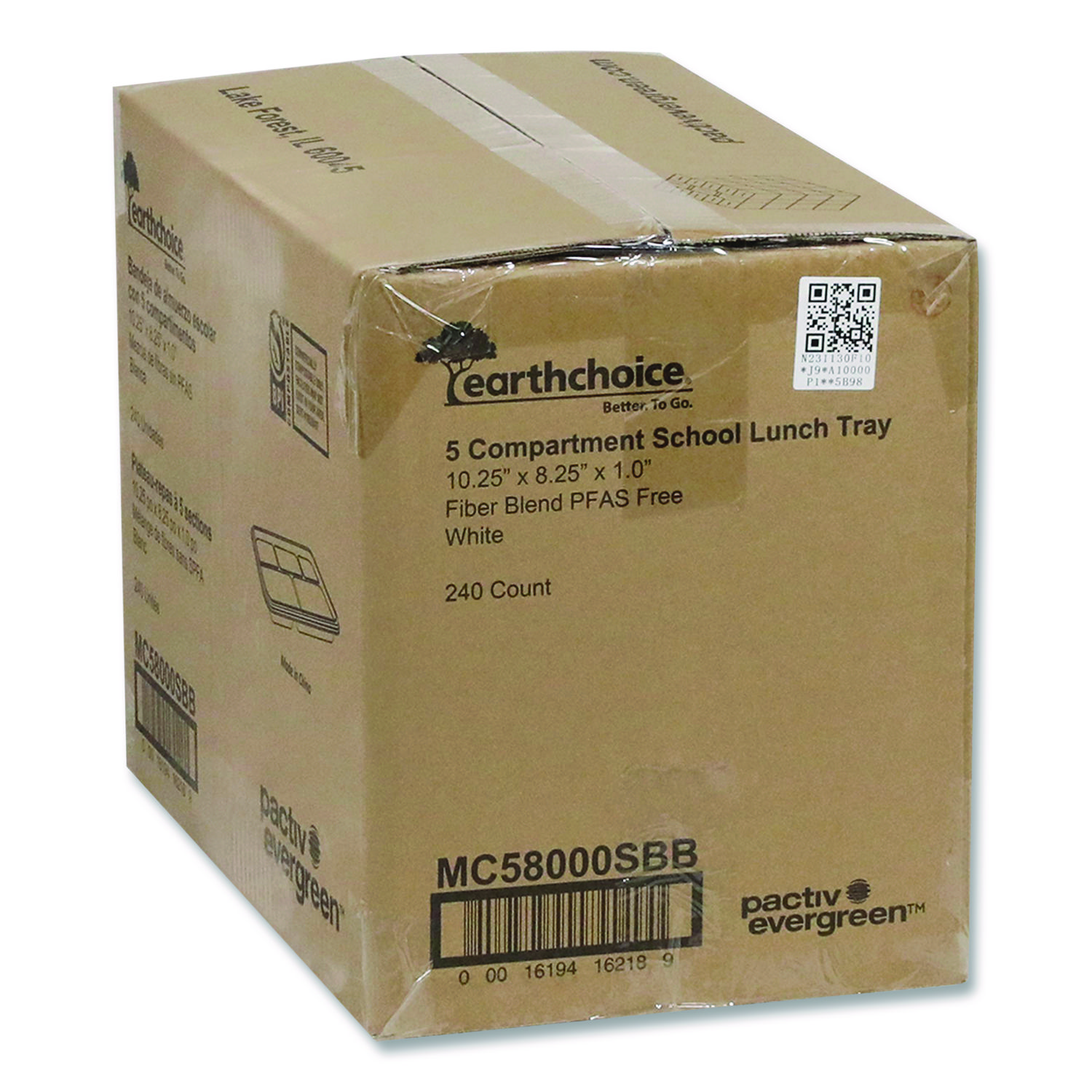 Compostable Fiber Blend School Lunch Tray, 10 x 8 x 1, White, 240/Carton