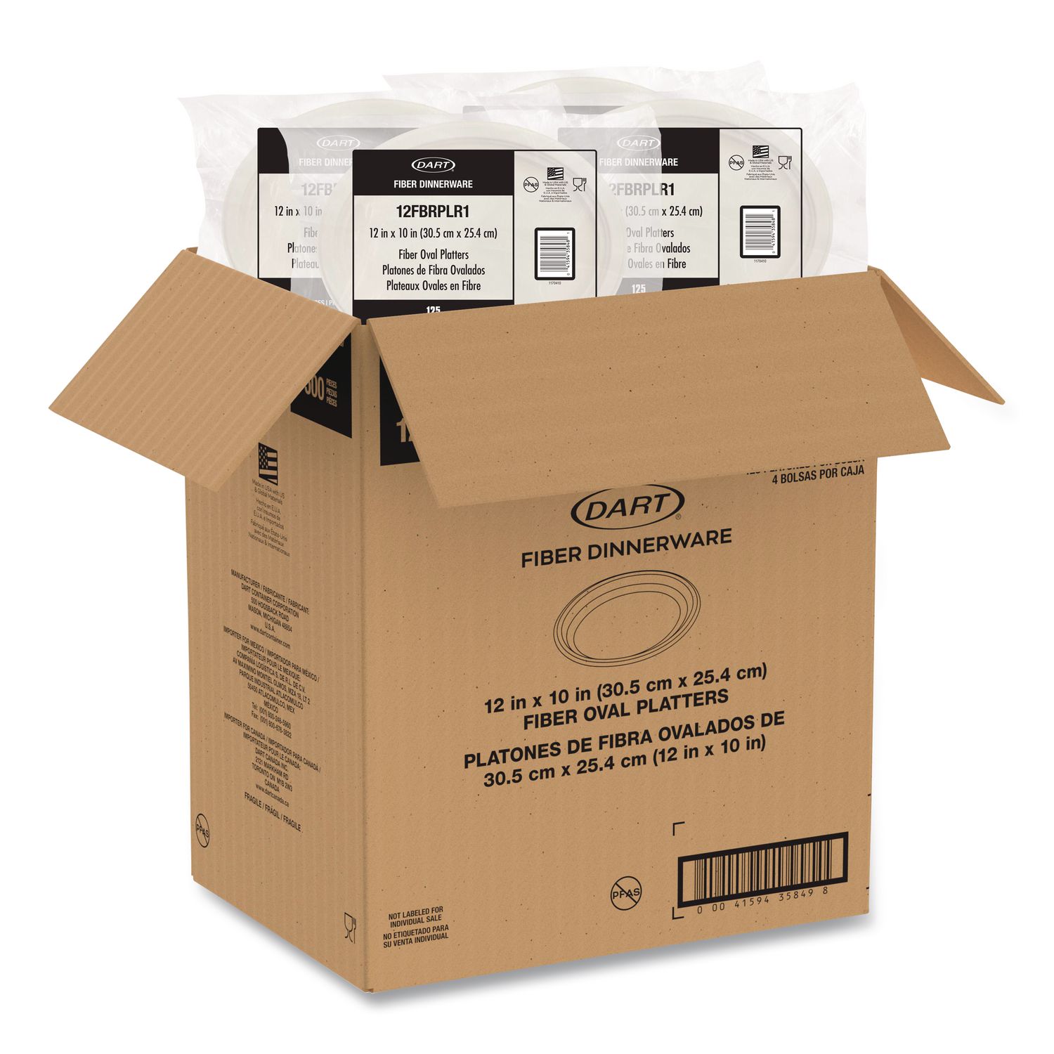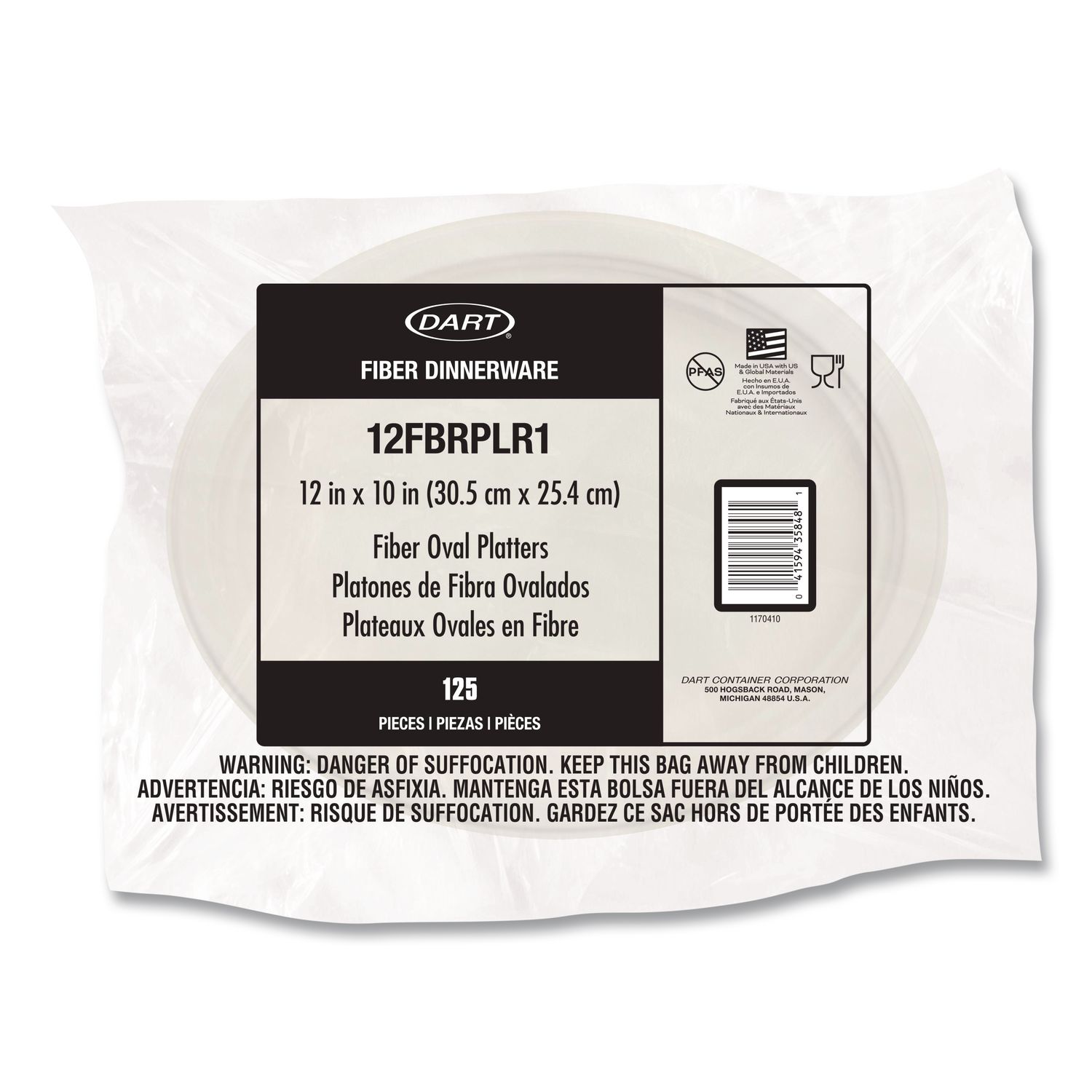 Stylish and durable, this dinnerware is made from a molded fiber blend that is PFAS-free. It provides a natural look and feel that patrons can connect with and trust. Elevate your dining experience with dinnerware that offers both a sustainable and high-quality solution. Strong construction avoids bending and folding and is designed to withstand oil and grease. Perfect for food truck fare, event catering, hospital meals and cafeterias. Microwavable and suitable for customers to reheat and enjoy. ProPlanet™ Seal—This product earns Dart’s ProPlanet™ Seal because it meets ASTM requirements for commercial compostability. Dinnerware Type: Platter; Material Type: Molded Fiber; Material(s): Fiber-Blend; Shape: Oval.