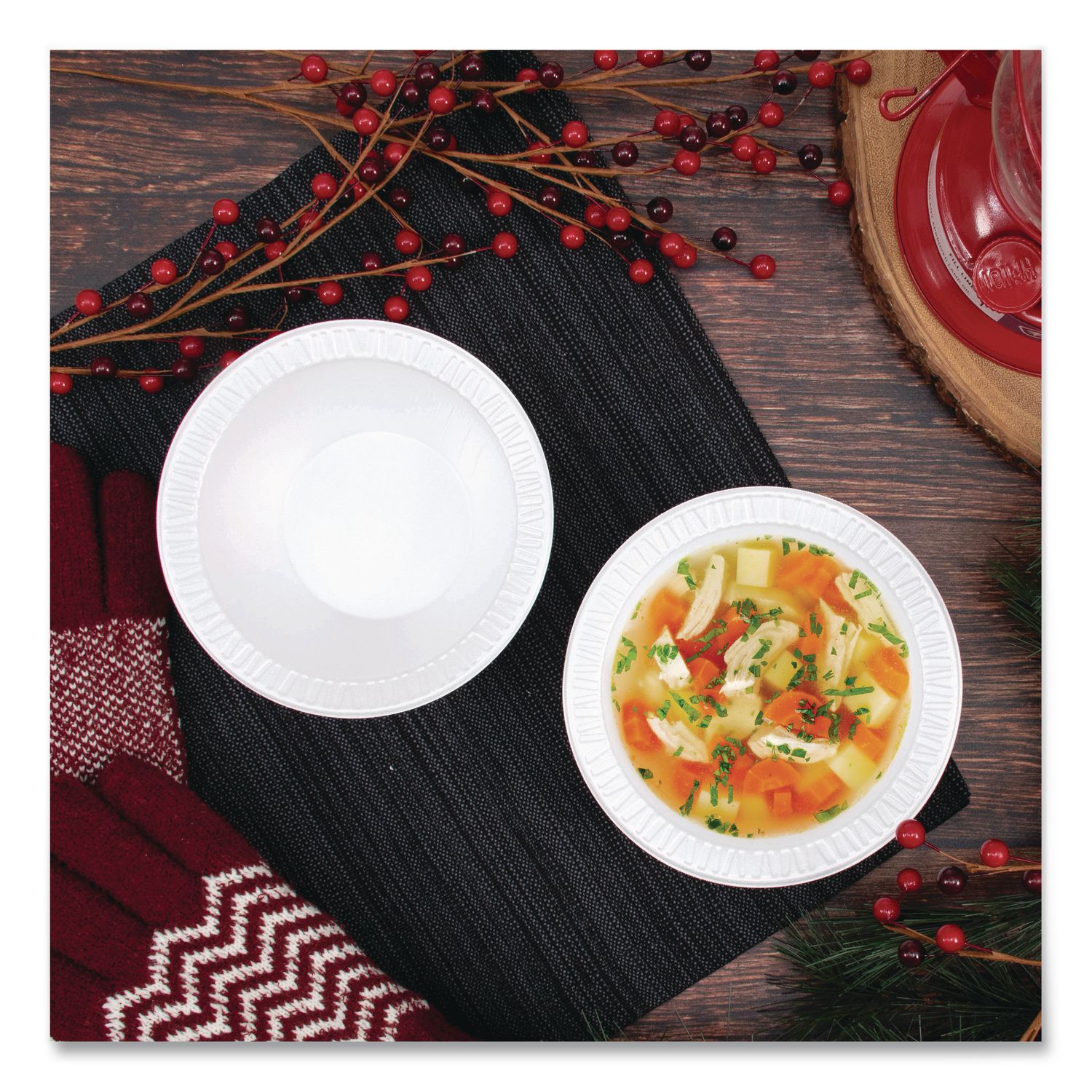 Serve up soup, ice cream or any side dish in these durable, lightweight disposable bowls. These Concorde foam bowls resist bending to securely contain food at cookouts, conferences and catered events alike. Standard bowls are inexpensive enough to throw away after single use yet strong enough to be reused. Made of non-laminated foam. Dinnerware Type: Bowl; Material Type: Foam; Material(s): Foam; Interior Volume Capacity: 12 oz.