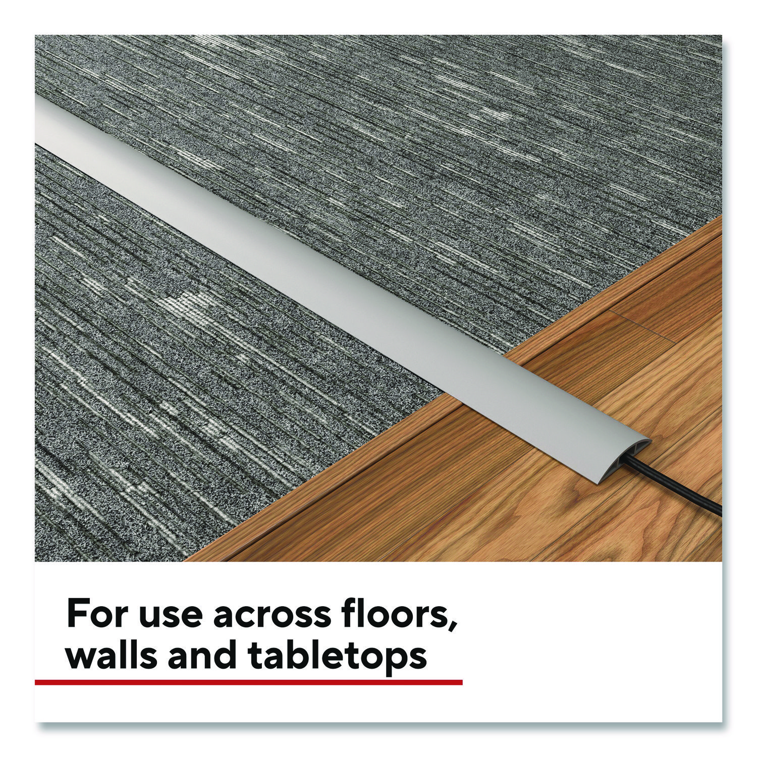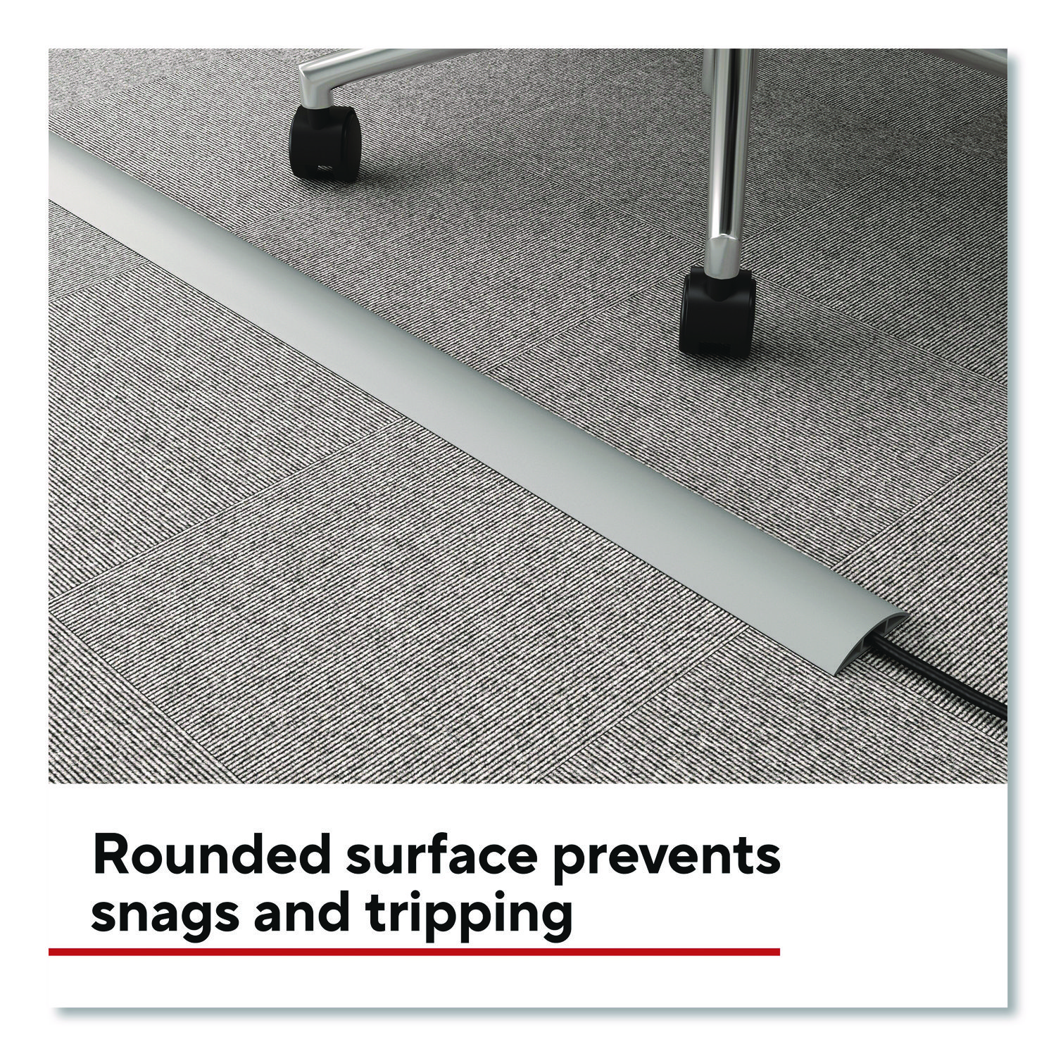 Protect your cords and cables with this Staples TECH cord cover. With a rounded rubber surface that prevents snags and tripping, this cord cover can safely adhere to wood floors, carpets, walls, and tabletops. The self-adhesive backing makes installation simple, and the durable rubber construction ensures long-lasting protection. Experience the high-quality and dependability of Staples TECH, with this cord cover that is backed by Staples Brands 100% satisfaction guarantee, or your money back. Cable Management Type: Cord Concealer; Color(s): Gray; Color Family: Gray; Length: 6 ft.