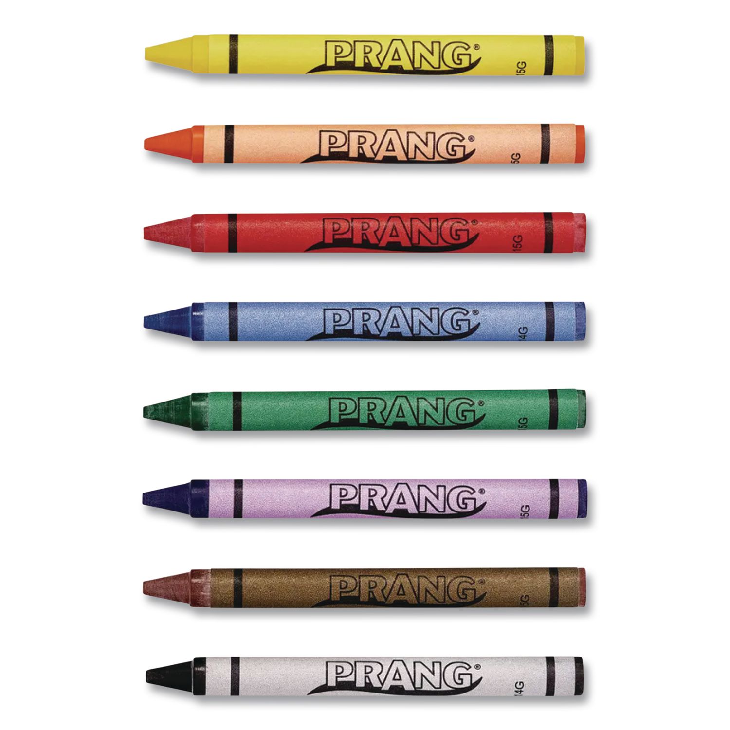 Soybean oil and wax formulation makes crayons brighter and smoother than ordinary wax crayons. Crayons in crisp, true colors offer excellent blendability and color purity. Easy-open tuck box keeps crayons accessible and safely stored. Number of Colors: 8; Color(s): Assorted; Color Family: Multicolor; Color Assortment: Black; Blue; Brown; Green; Orange; Red; Violet; Yellow.