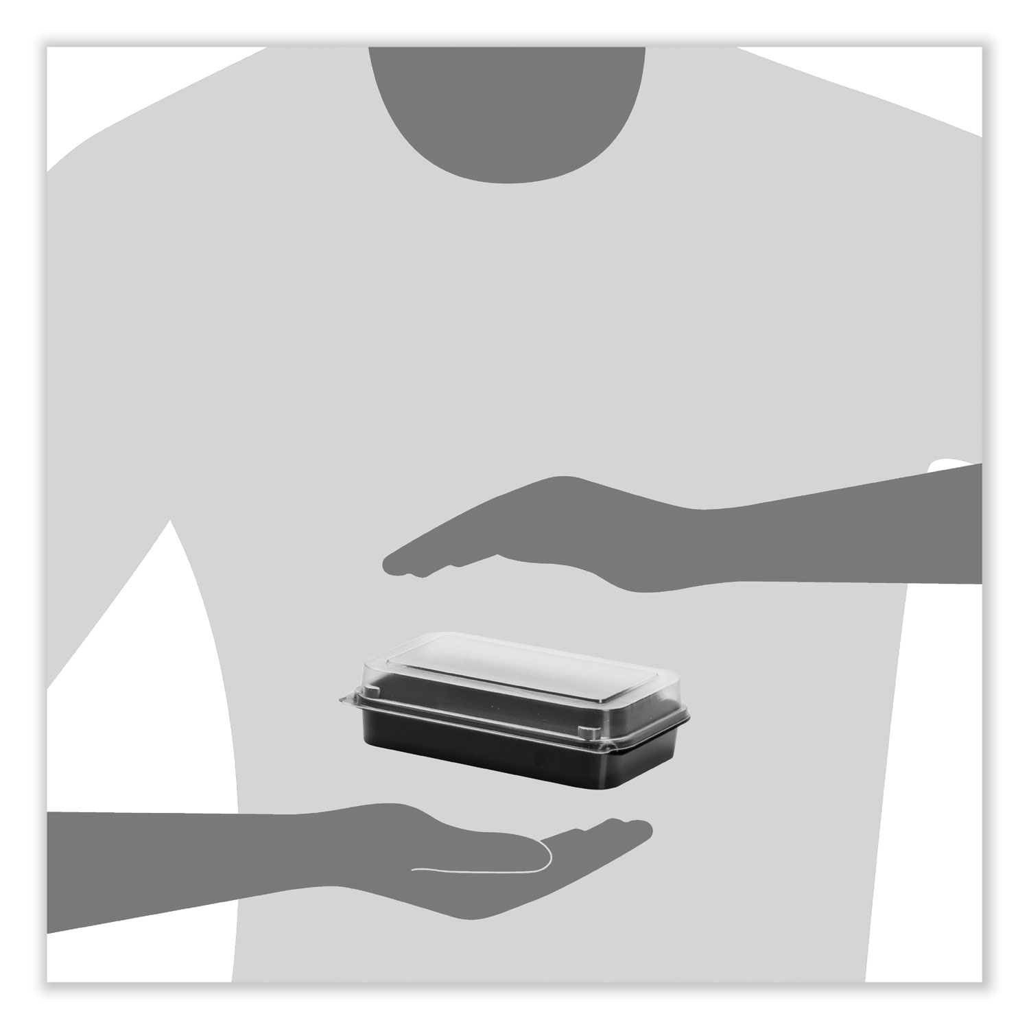 Easy-close package that’s ready in a snap Make carry-out a breeze for your customers with the Creative Carryouts containers, featuring secure closures, multiple compartments and sizes, and a stackable design that improves space efficiency and portion control. Suitable for a plethora of food applications, these upscale containers are meant to be shown-off and will enhance your customers’ expectations of the take-out industry, which in return will further your brand’s appeal. Food Container Type: Hinged Lid Container; Material(s): Polystyrene; Material Type: Plastic; Color(s): Black/Clear.