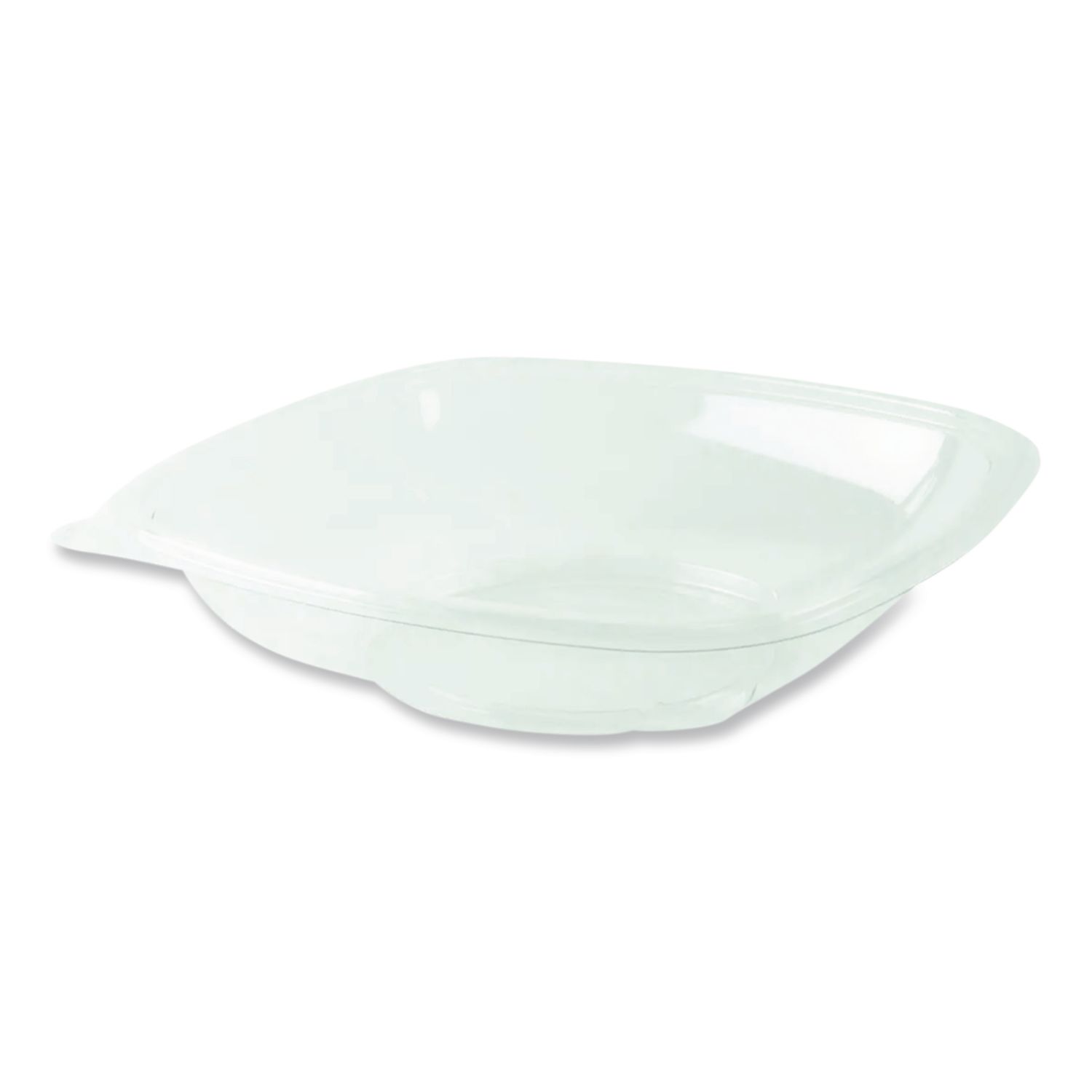 This bowl offers excellent structural strength and crack resistance. Stands up to cold temperatures and won’t break even when dropped. Large textured tabs, provide for easy opening by customers. An interlocking feature on the bowl and lid assures positive stacking on display or in the bag. Provide the perfect showcase for your product. Food Container Type: Base; Material(s): RPET; Material Type: Plastic; Color(s): Clear.