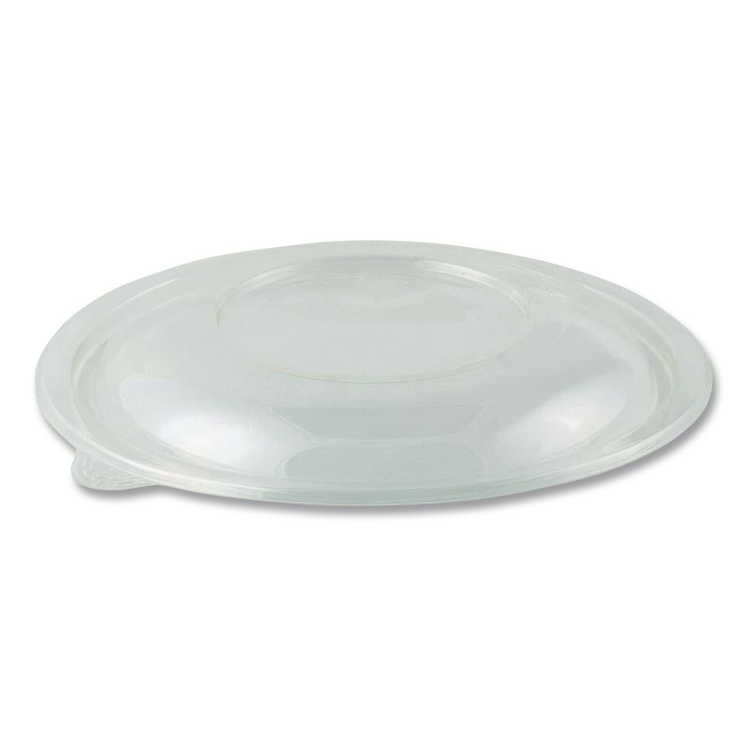 Inner/outer double-seal provides a leak-resistant seal. Large textured tabs, provide for easy opening by customers. An interlocking feature on the bowl and lid assures positive stacking on display or in the bag. Food Container Type: Lid; Material(s): Polyethylene; Material Type: Plastic; Color(s): Clear.