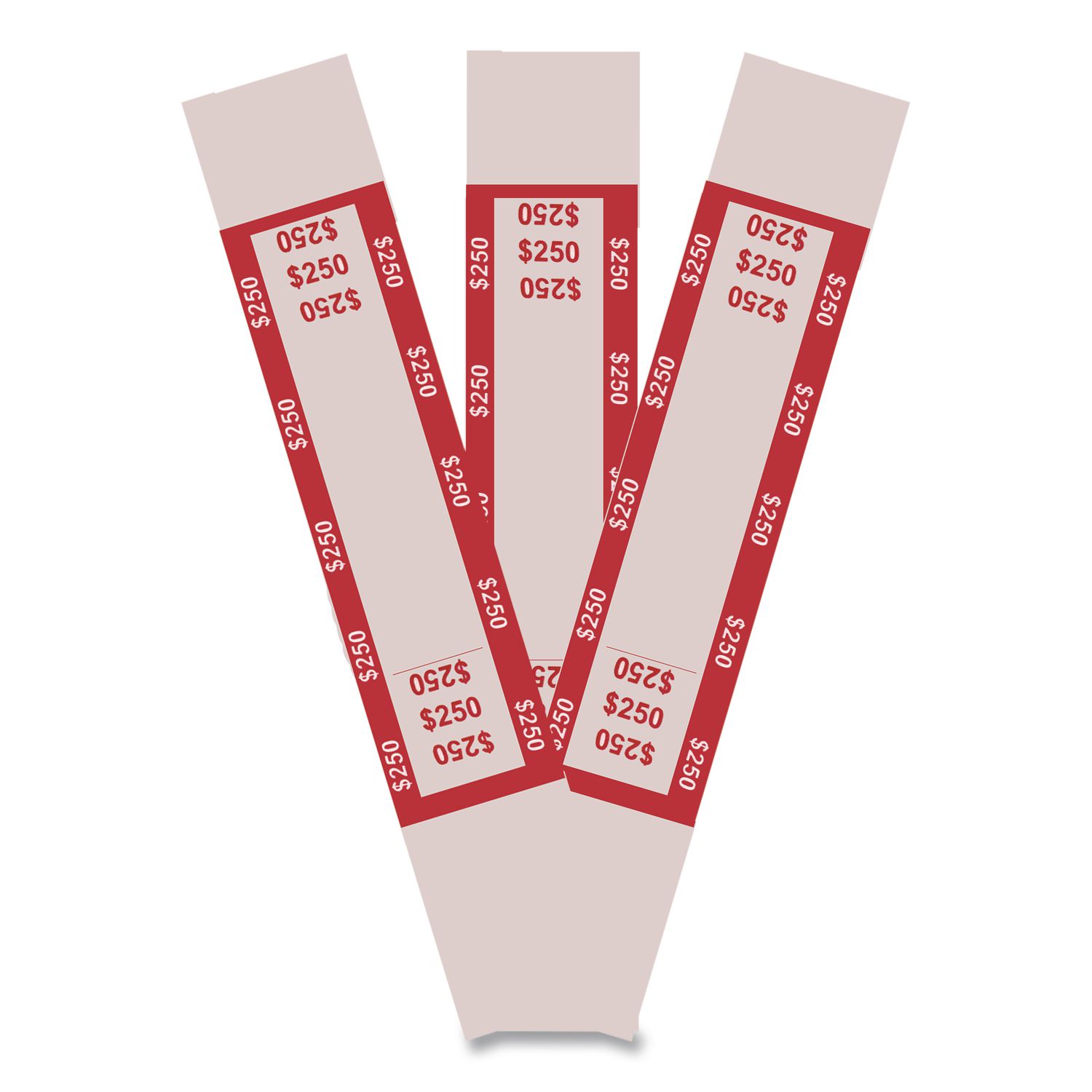 Currency Straps, Self-Adhesive, Ones, $250 Strap, Pink/White, 1,000/Pack