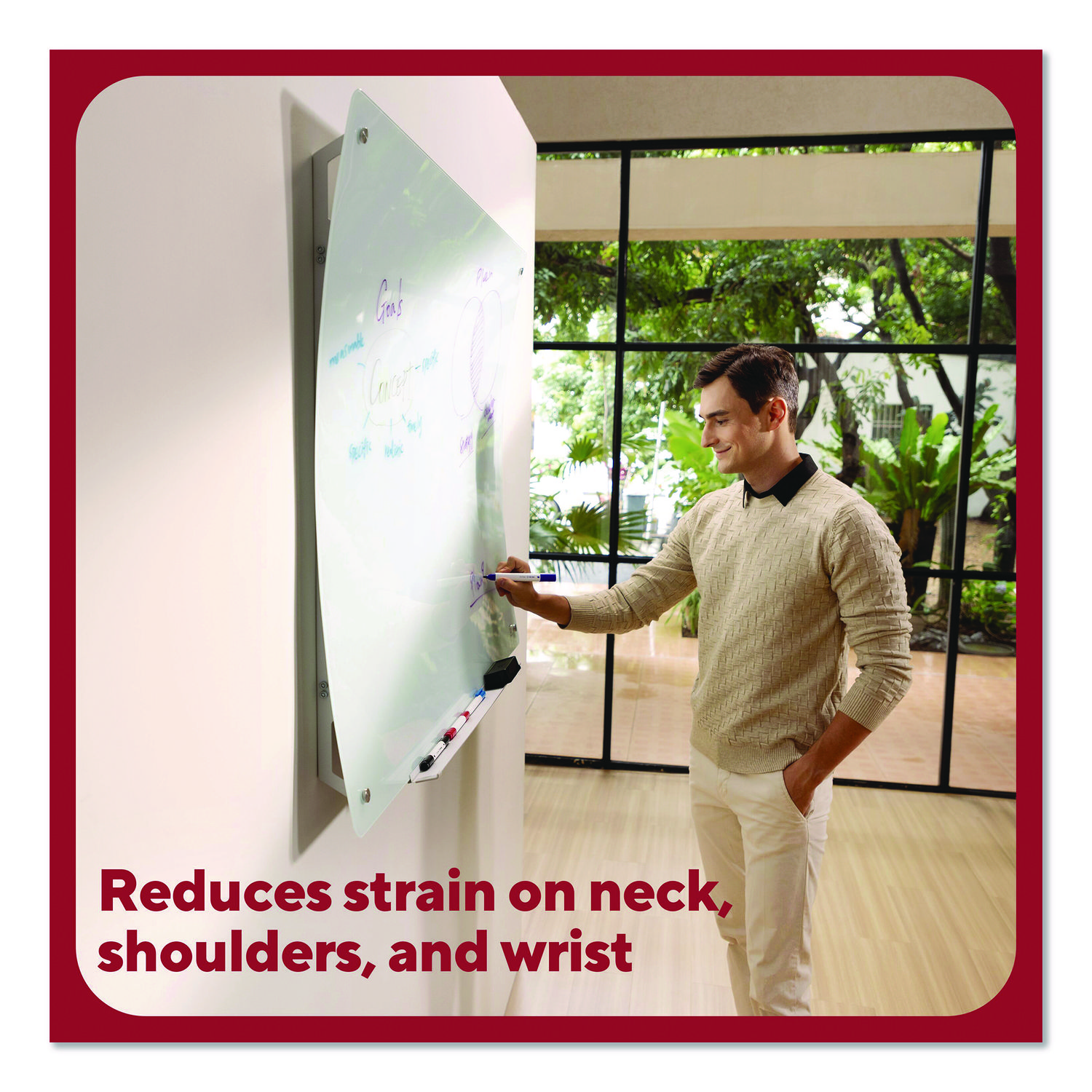 A first of its kind, the TRU REDâ„¢ Curved Whiteboard is ergonomically designed for a more comfortable writing experience. Lead a lesson or brainstorm, and most importantly save your back using this whiteboard. The slightly curved shape makes it easier to write on by rising slightly to meet your hand as you work down the surface. Each part of this scratch- and stain-resistant tempered glass whiteboard is easy to reach, eliminating the need to squat or stretch. A durable steel back makes this magnetic frameless whiteboard ideal for heavy use in classrooms or offices. Board Surface Type(s): Dry Erase; Magnetic Board Surface: Yes; Surface Use Rating: Heavy/Frequent Use; Surface Material: Glass.