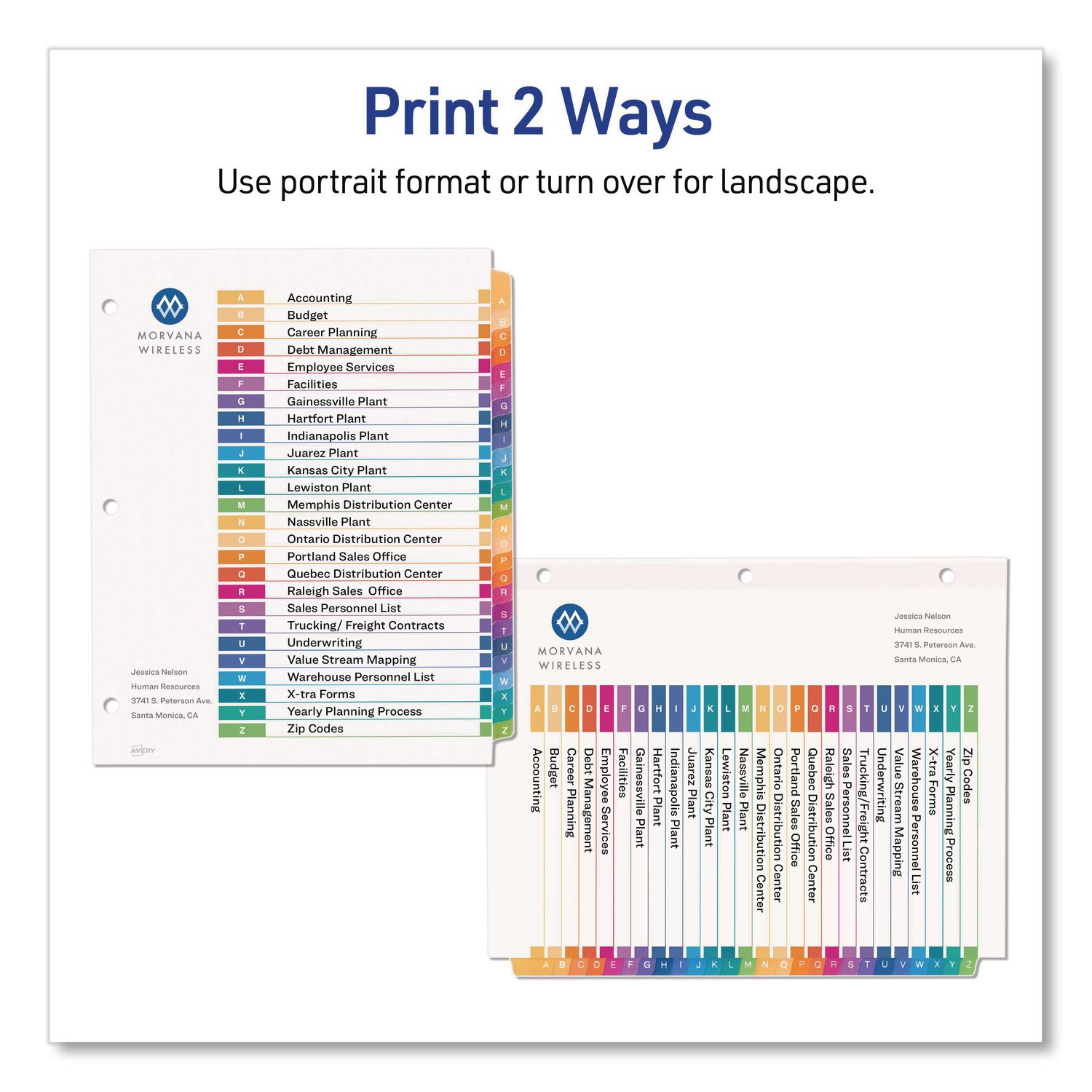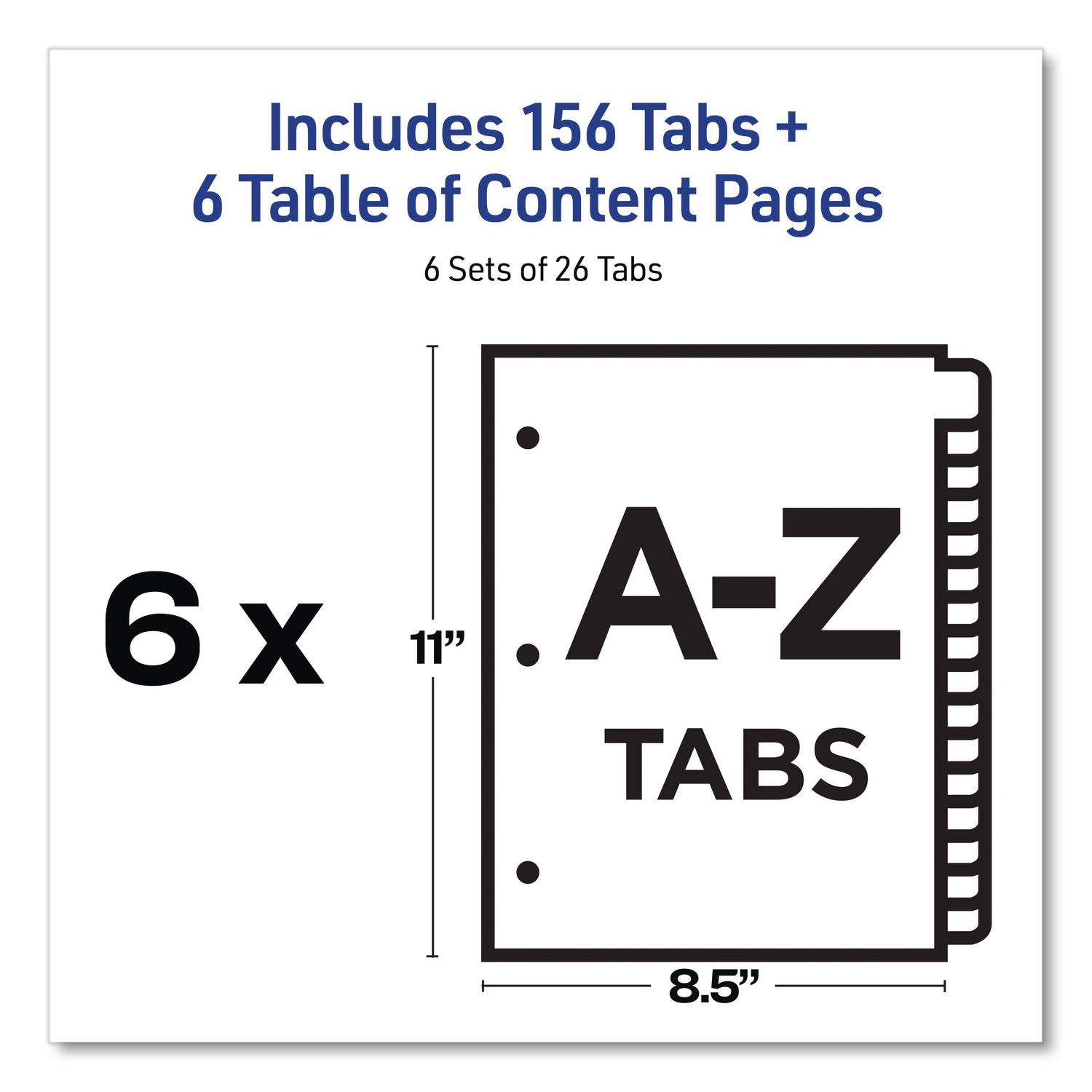 Customizable Table of Contents Ready Index Multicolor Dividers, 26-Tab, A to Z, 11 x 8.5, White, 6 Sets