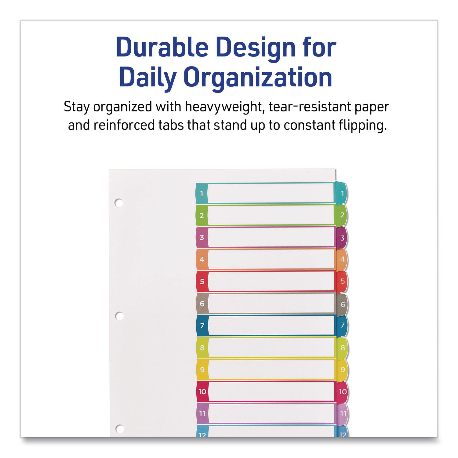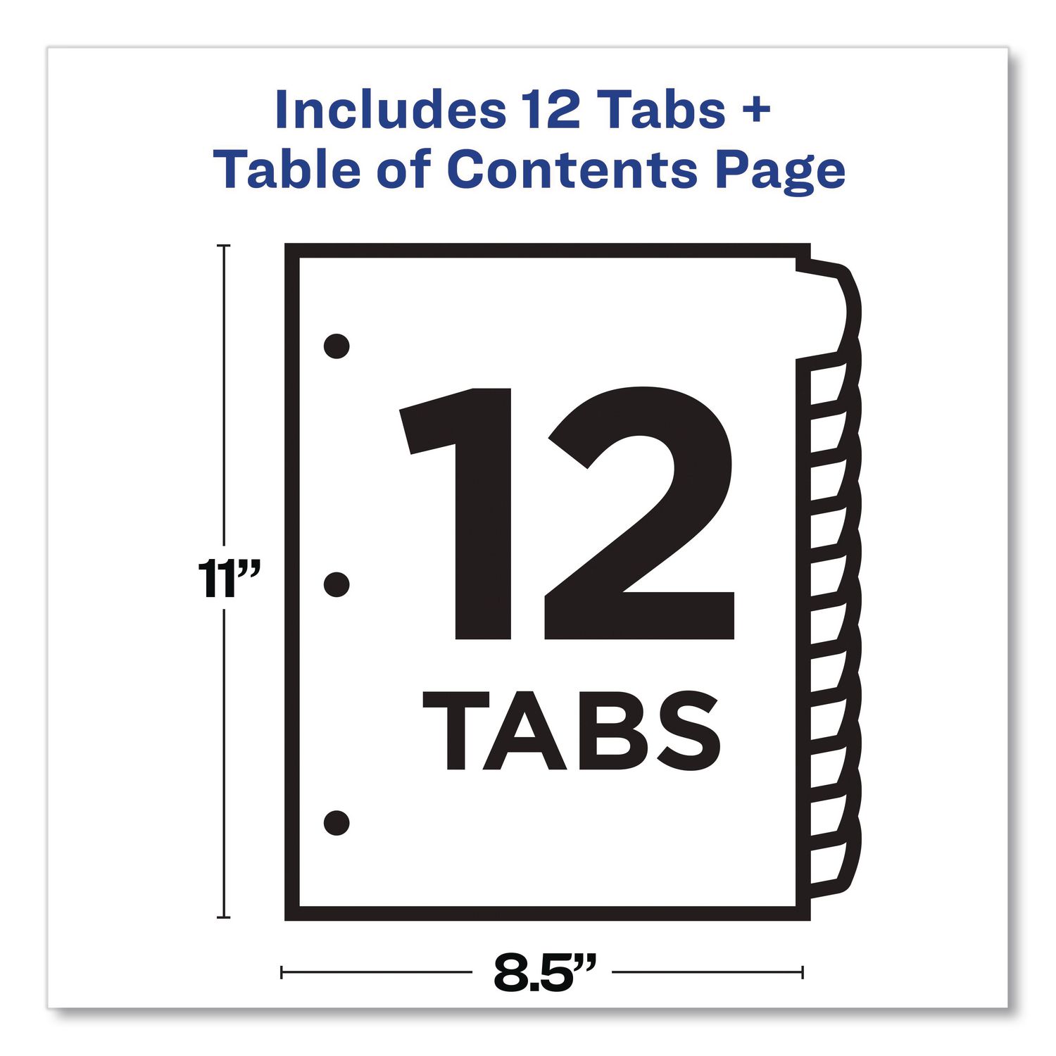 Customizable TOC Ready Index Multicolor Tab Dividers, 12-Tab, 1 to 12, 11 x 8.5, White, Contemporary Color Tabs, 1 Set