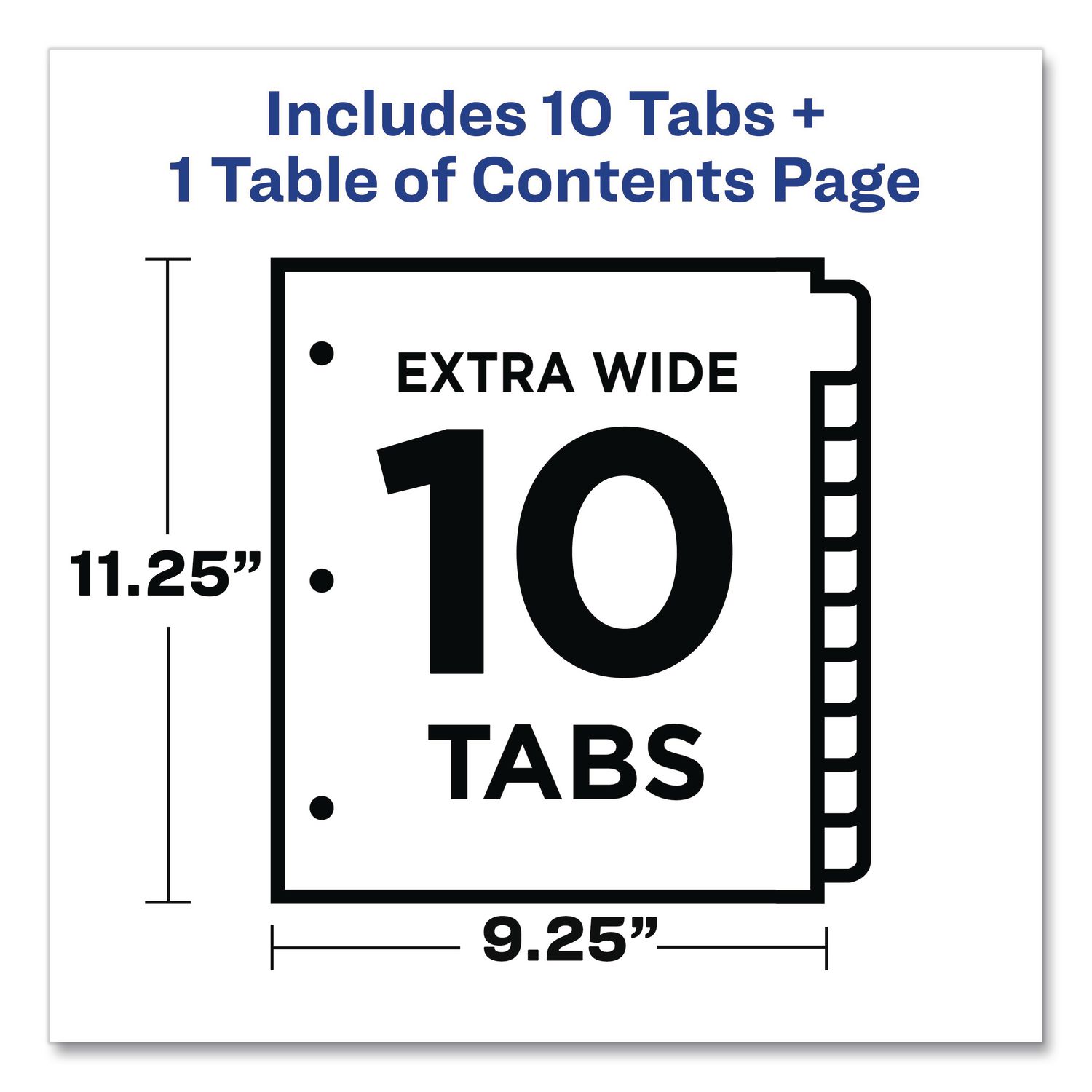 Customizable TOC Ready Index Multicolor Tab Dividers, Extra Wide Tabs, 10-Tab, 1 to 10, 11 x 9.25, White, 1 Set