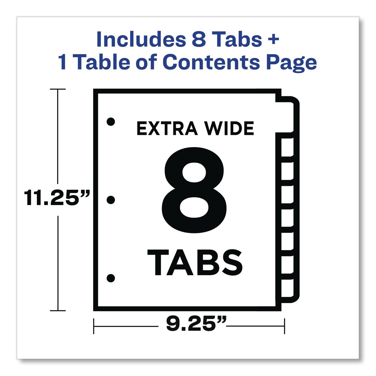 Customizable TOC Ready Index Multicolor Tab Dividers, Extra Wide Tabs, 8-Tab, 1 to 8, 11 x 9.25, White, 1 Set