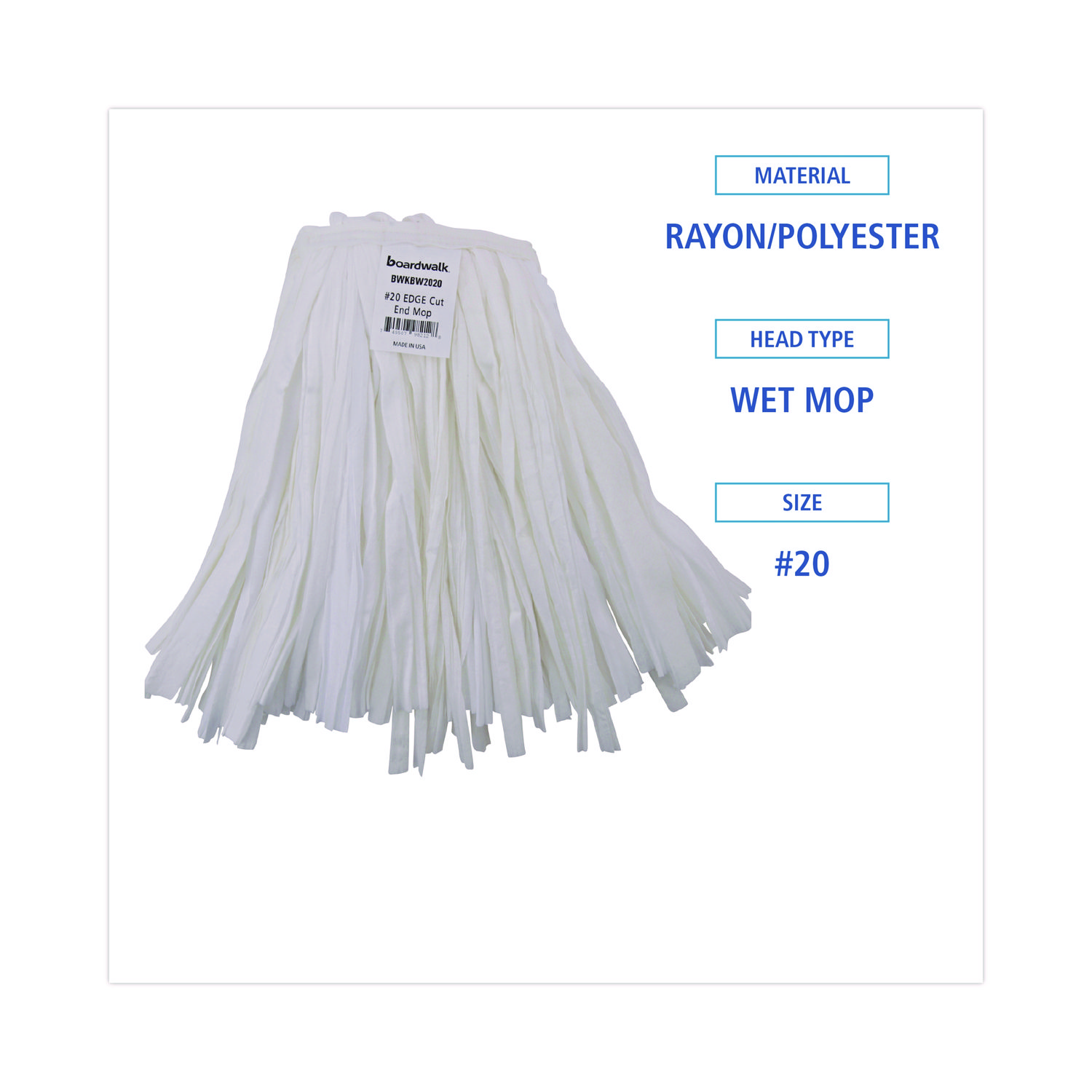 Clean up quicker with a high-quality, ultra-absorbent mop head. Cut-end design minimizes snags. Heavy-duty headband ensures secure attachment to handle. For use with clamp-style mop handles and wringer bucket (sold separately). Mop Head Type: Wet Mop; Application: Floor Maintenance; Mop Head Style: Cut End; Mop Head Size: 20 oz.