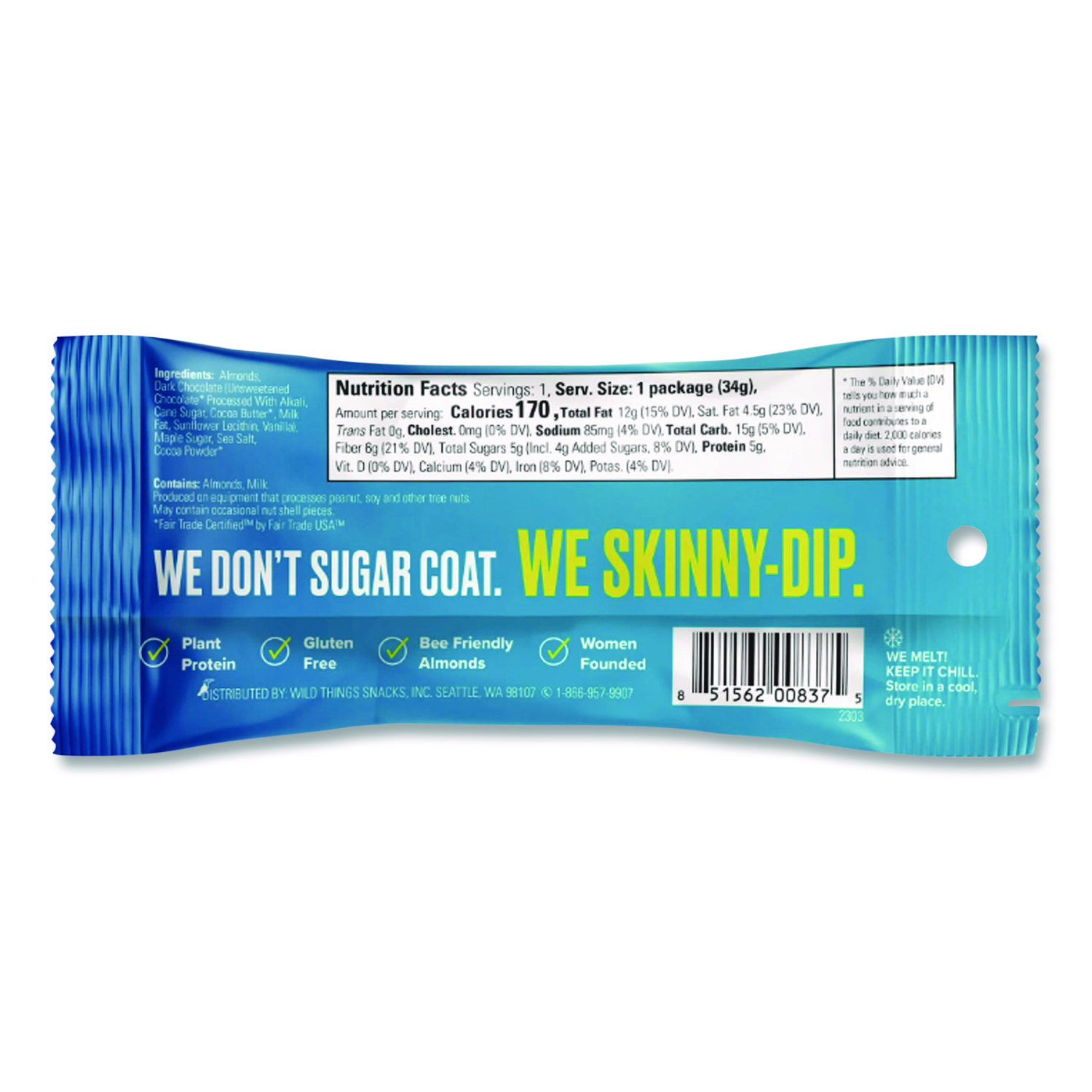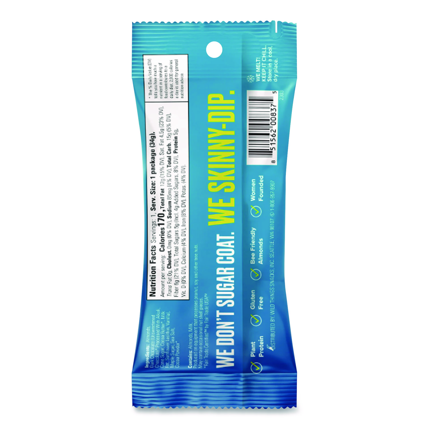 These whole almonds dipped in a thin layer of artisan dark chocolate and finished with a hint of cocoa are a great grab-and-go snack for a boost of energy during the day. They are also perfect for a post-workout snack naturally packed with protein and fiber. Unlike traditional chocolate almonds, these nuts have a super-thin layer of dark chocolate, so you get more almond in every bite and just enough chocolate to make your day a little sweeter. One serving has less sugar than an apple and as much protein as an egg. Nothing but real, clean, delicious goodness. Food Type: Nuts; Flavor: Dark Chocolate Cocoa; Capacity (Weight): 1.2 oz; Sugar Free: No.