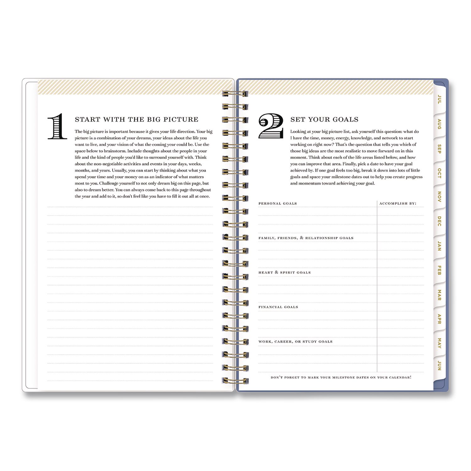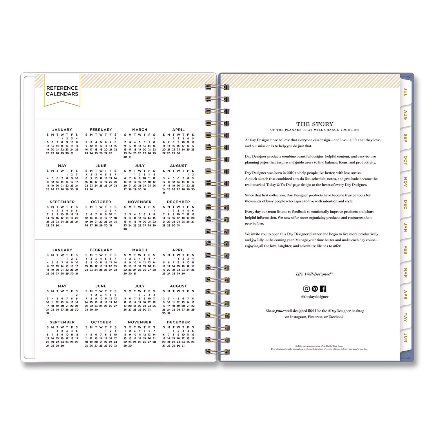 | Separate Sections: | (2) Bonus Past Monthly Spreads (May-June); Four-Step Planning System; Ruled Notes Pages; Two-Year Holiday List; Two-Year Reference Calendar |