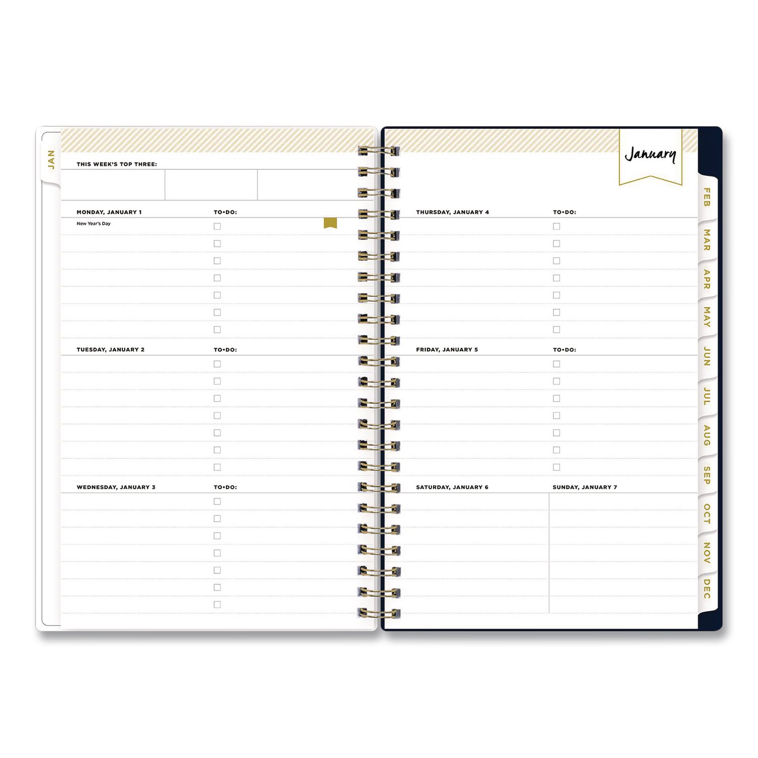 | Separate Sections: | (6) Bonus Past Monthly Spreads (July-Dec); Four-Step Planning System; Holidays; Notes/Memos; Two-Year Reference Calendar; Gold Foil Sticker Sheet |