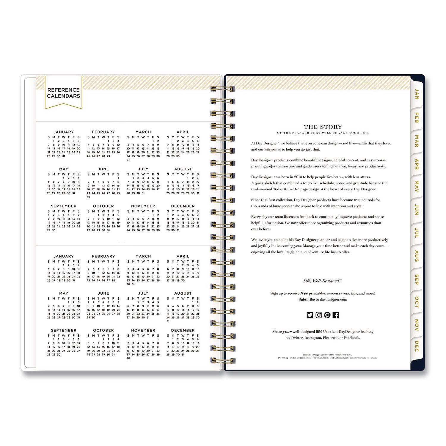 Day Designer planners offer both functionality and modern beauty to help you stay on track and focused throughout your busy days. Includes introductory letter from Whitney English, worksheets for personal goals and intentions, dated calendars, yearly overviews, holidays and notes. This smart, stylish, unique planning system features the “Peyton” floral cover with gold foil detail. Weekly calendar view per two-page spread contains space for daily schedule, to-do list, top three goals for the week. Monthly calendar view per two-page spread offers a visual overview of your time. A clear CYO (create your own) cover pocket allows you to keep track of loose notes, details and papers in the front of your planner. Twin-wire binding and durable, coated tabs offer easy page turning and access to past, present and future months. Dated: Yes; Academic Year: No; Calendar Format: Weekly/Monthly; Calendar Spread Format: One Week per Two-Page Spread; One Month per Page.