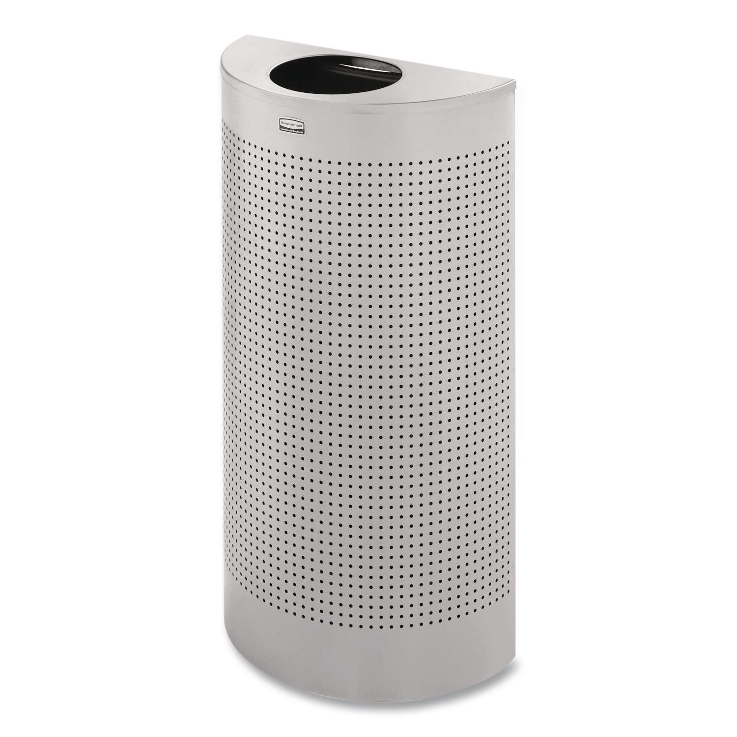 Offers functional litter control in an elegant design. The garbage can has an open top with a vinyl trimmed disposal opening. The trash can is made of fire-safe steel. Its wall-hugging design is ideal for areas where looks are important and space is limited. The lift-off trash can body makes it easier to empty and has a rigid plastic liner that will not leak. Half-Round—Open top receptacle. Waste Receptacle Type: Indoor All-Purpose Waste Bin; Material(s): Steel; Application: Indoor All-Purpose Waste Disposal; Interior Volume Capacity: 12 gal.