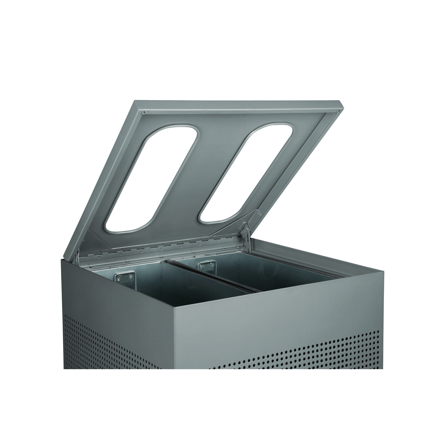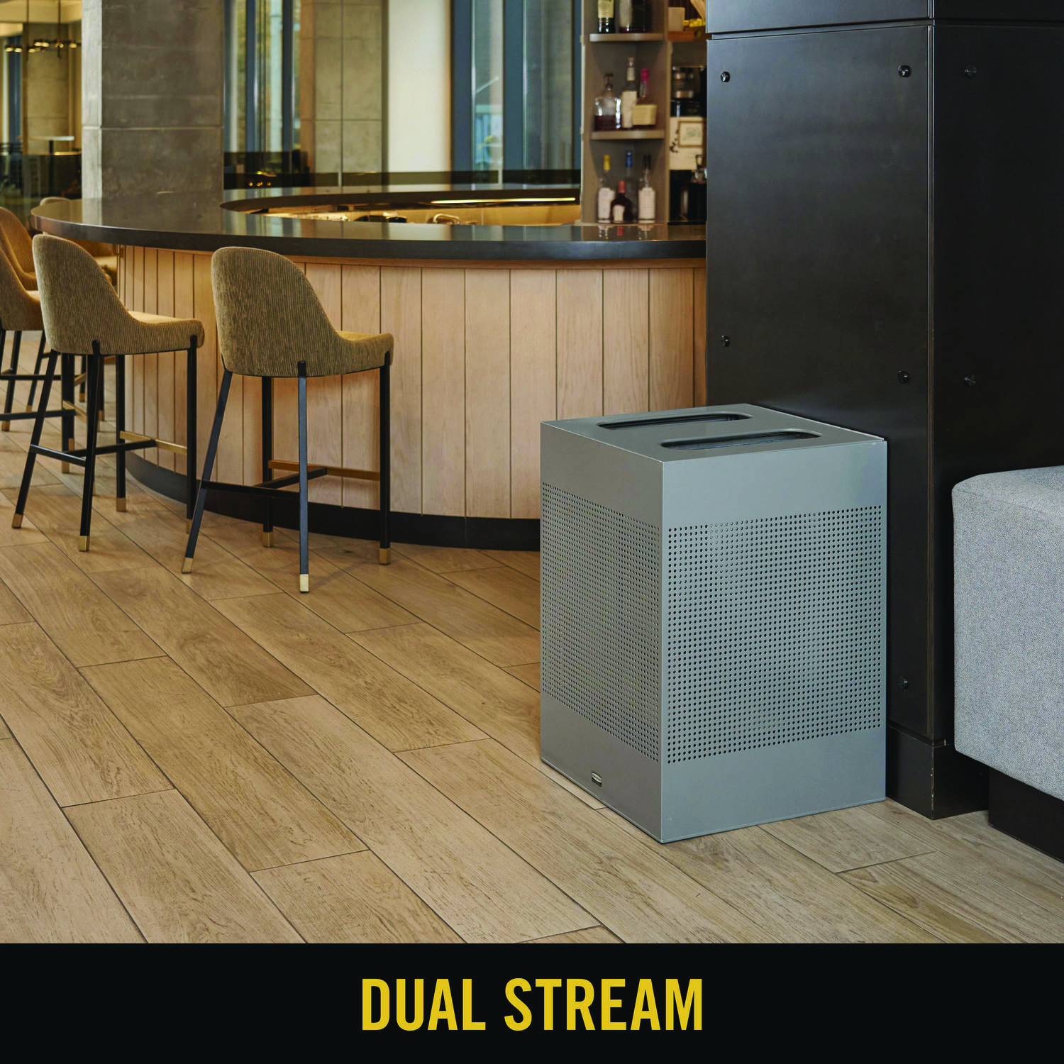 Designer Line Silhouettes Waste Receptacle, 34 gal, Steel, Silver Metallic