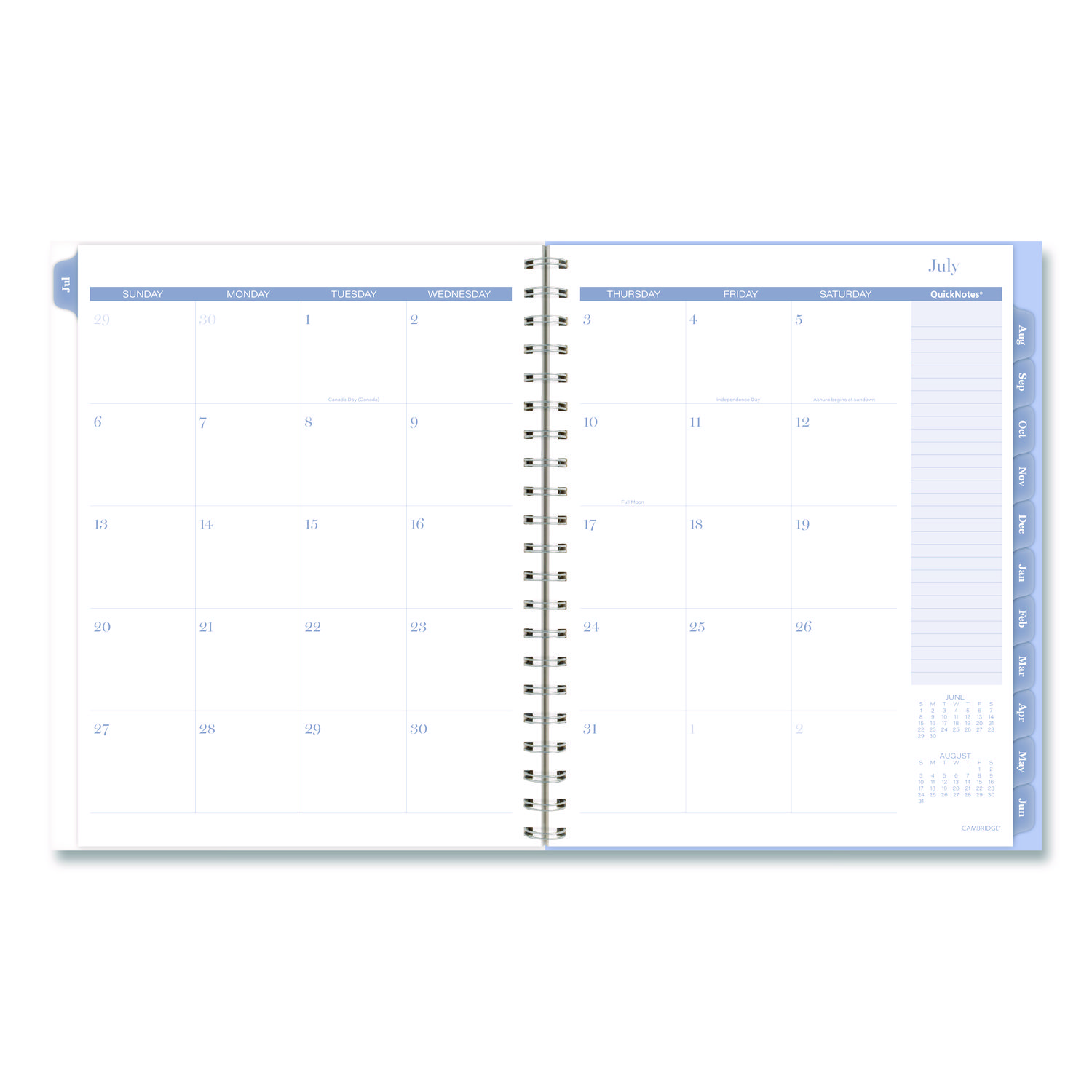 | Calendar Spread Format: | One Week per Two-Page Spread; One Month per Two-Page Spread |