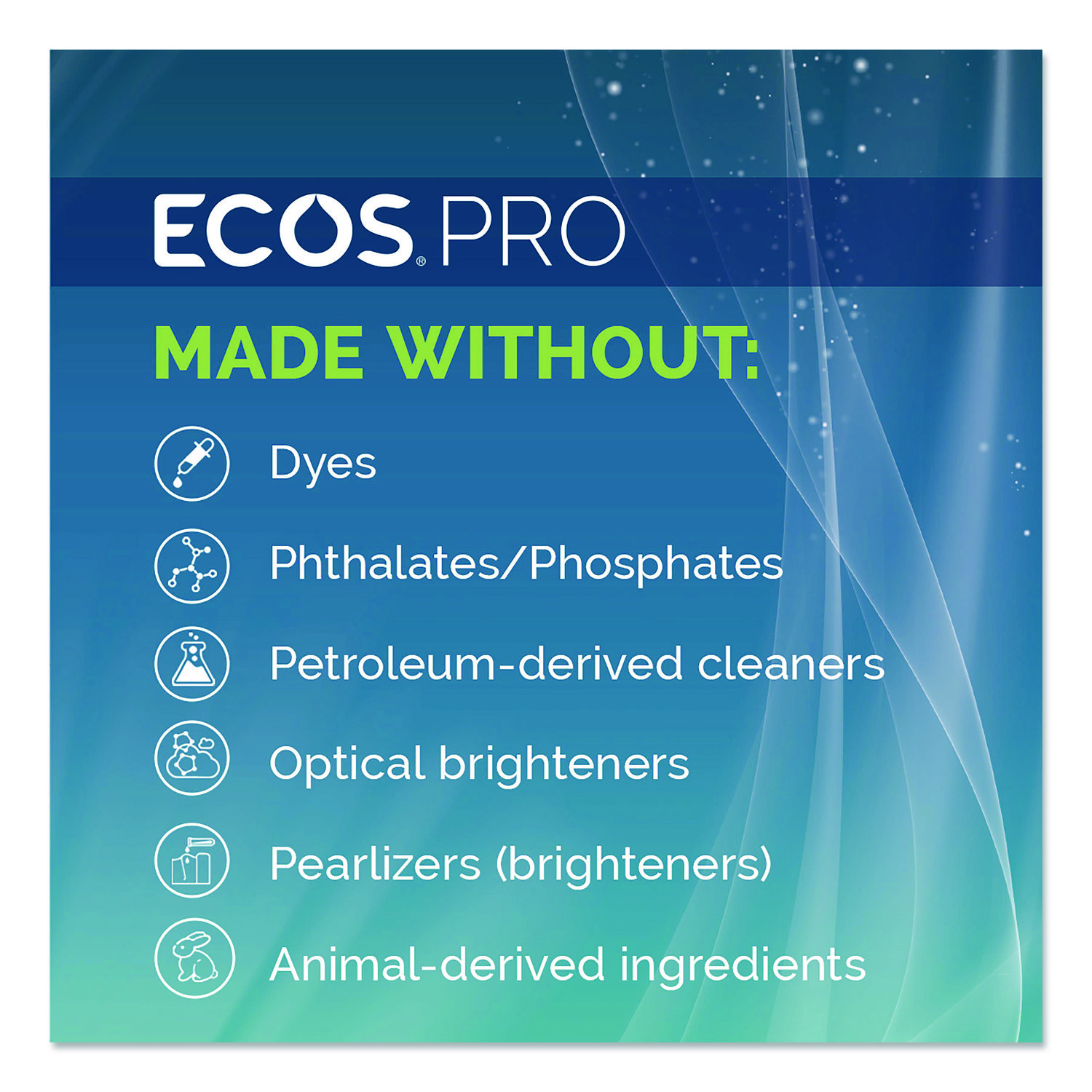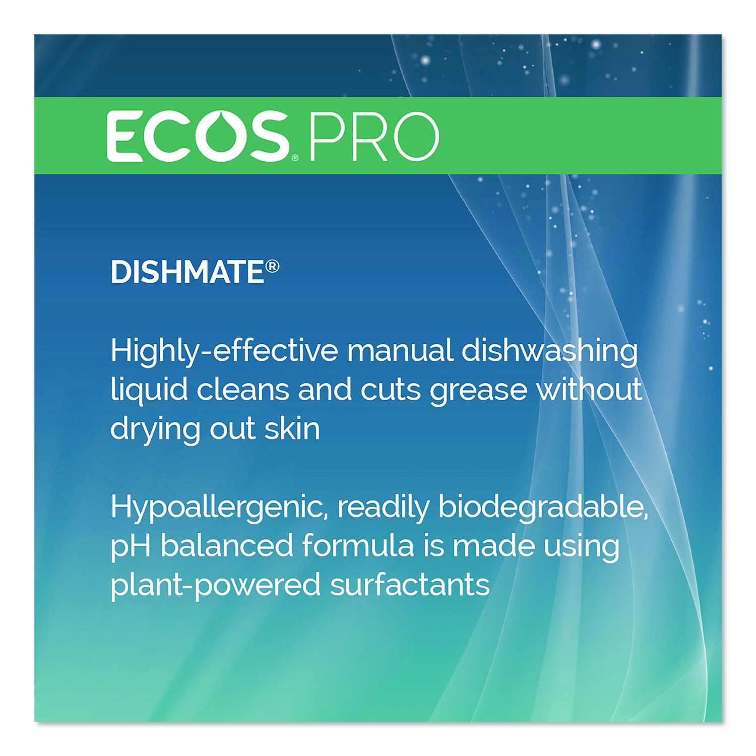 This highly effective ECOS PRO Dishmate manual dishwashing liquid cleans and cuts grease without drying out skin. The unique formulation leaves less residue on dishes for a quicker rinse time and reduction in water usage. The hypoallergenic, pH-balanced formula is made using sustainable, plant-derived surfactants. The product is free of dyes and is gray water and septic safe. Not tested on animals. Application: Manual Dishwashing Detergent; Applicable Material: Ceramics; Crystal; Enamel; Fiberglass; Glass; Metal; Plastic; Chemical Compound: Water; Sodium Coco Sulfate; Cocamidopropylamine Oxide; Lauramine Oxide; Cocobetaine; Tetrasodium Glutamate Diacetate; Phenoxyethanol; Ethylhexylglycerin; Citric Acid; Dirt Types: Food; Food Grease; Oils; Organic Materials.