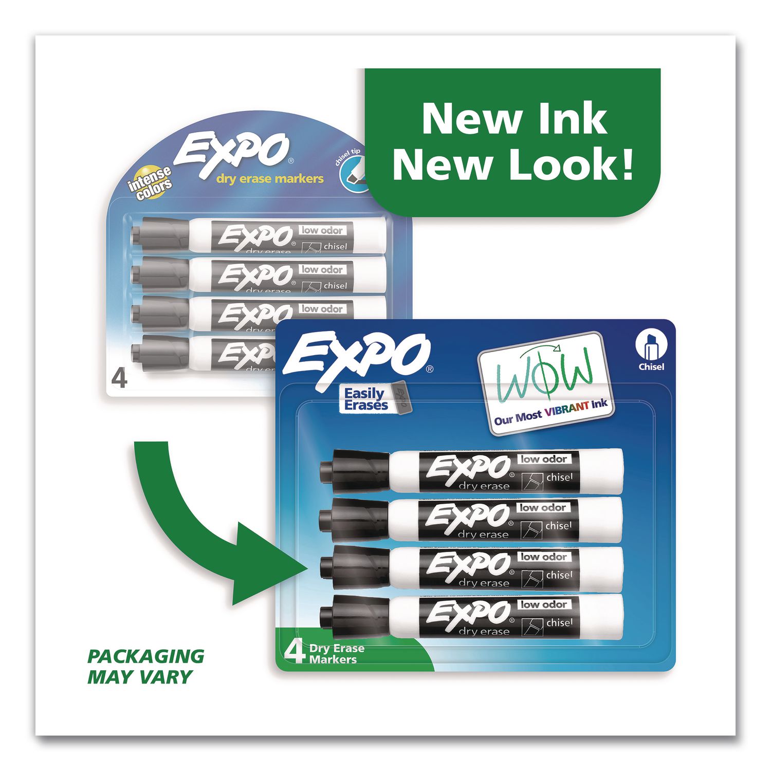 Dry Erase Marker, Chisel Tip, Black, 4/Pack