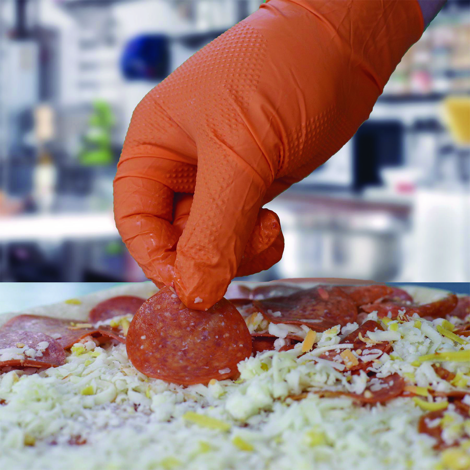 Xtreme by AMMEX® DT Industrial Nitrile Disposable Gloves are diamond textured for an enhanced grip on tools and machinery. Their hi-vis orange color stands out in dark environments to keep hands in plain sight. At 6 mils thick, Xtreme gloves resist punctures as well as permeation by chemicals. They are good for a variety of uses, from automotive to food processing, janitorial/sanitation to manufacturing and more. Glove Material: Nitrile; Packaged Sterile: No; Size Type: X-Large; Length: 9.5″.