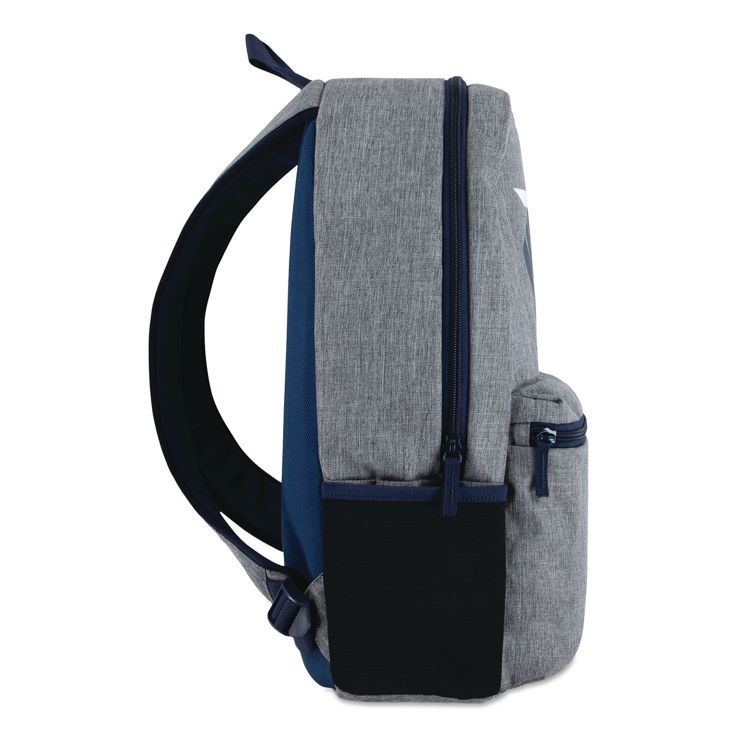 This Dual Logo day pack by 3Brand is made of durable polyester fabric and features dual logos printed on the front. The spacious main compartment has a dual-zipper closure and houses a padded laptop sleeve. Mesh bottle pockets on the sides can hold your favorite beverages, while a zippered pocket on the front secures items you want quick and easy access to. The padded back and adjustable straps make it so you can carry your haul comfortably. 3% of all 3Brand revenue is donated to the Why Not You Foundation, a nonprofit organization founded by Russell and Ciara in 2014 dedicated to fighting poverty through education, empowering youth to lead with a why-not-you attitude. Color(s): Gray/Black; Color Family: Gray; Material(s): Polyester; Carrying Handle: Yes.