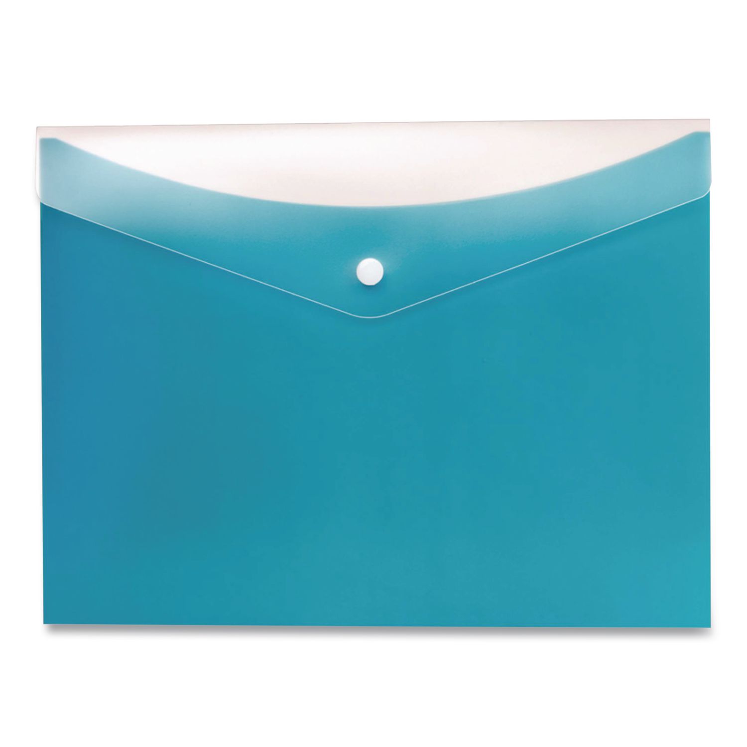 Poly envelope has additional pocket on back. Snap closure keeps contents secure. Carry documents securely. The poly construction withstands water and tears, making it a durable paper storage option. The snap cover protects your paperwork from dirt and damage. These dual-pocket snap envelopes feature an extra pocket on the back for holding receipts, business cards or notes. Holds up to 50 sheets. Pocket/Wallet Type: Documents/Files; Document Size Range: Letter; Closure Type: Snap; Color(s): Assorted.