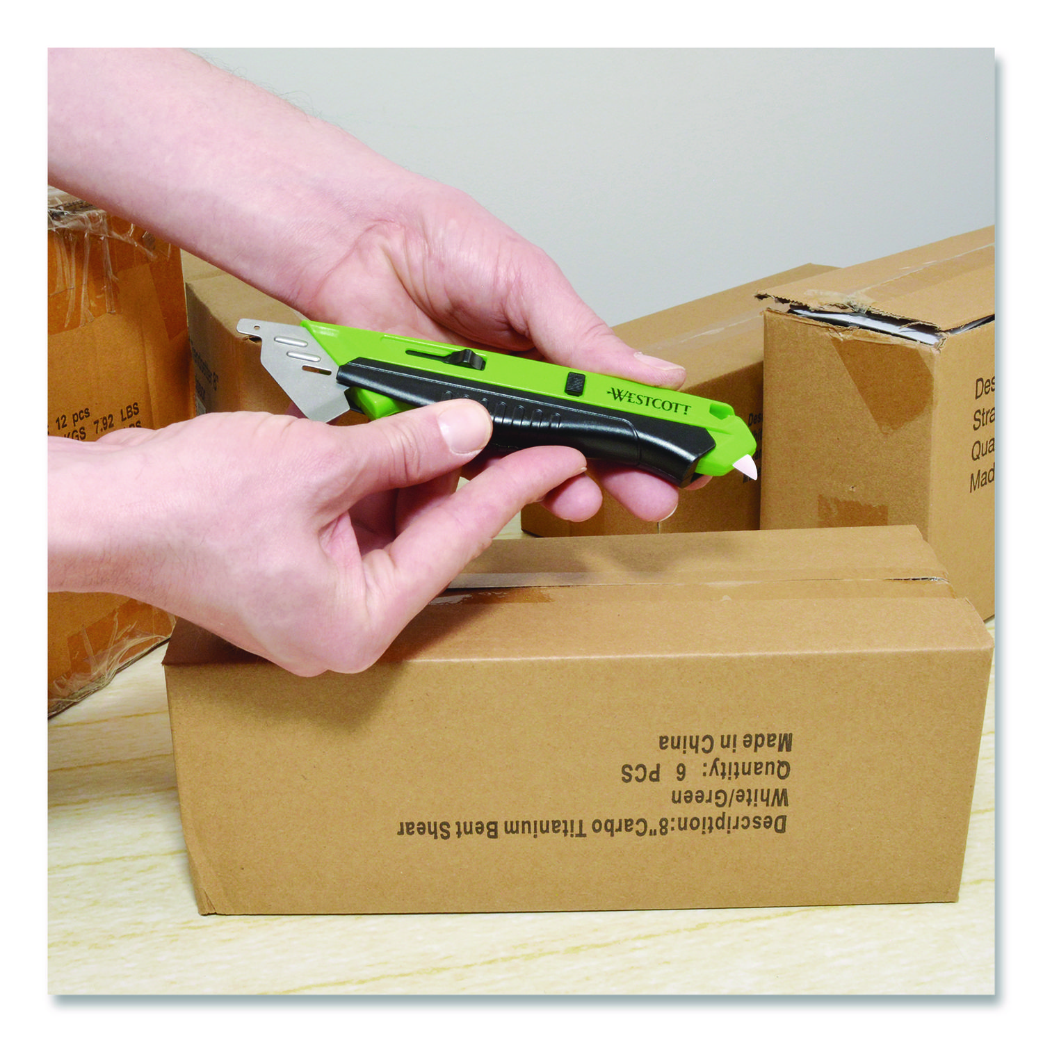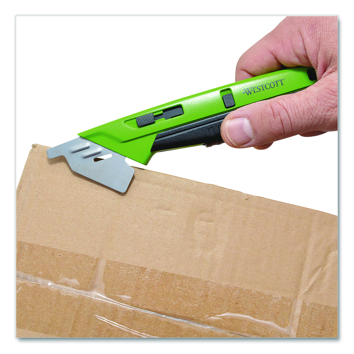 A safer alternative to steel blade box openers. The ceramic blade will stay sharper longer than traditional blades. These are a great addition to the home, office or garage. They allow you to easily break down boxes with handling safety in mind. Dual ceramic blades with sliding guard. Two-position box top opener with metal guide. Bonus rear blade for general use. Knife Type: Retractable; Blade Material: Ceramic; Number of Blades: 2; Handle Material(s): ABS Plastic.