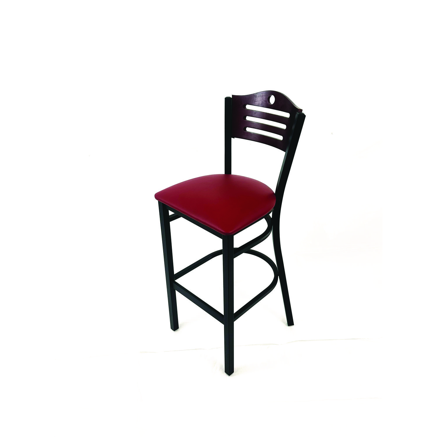 Introducing the perfect seating solution for your home or business-the Eagle Series metal framed barstool with vinyl seat pad. This sleek and modern design is built to provide maximum comfort and durability, all while adding a touch of style to your space. With a sturdy metal frame, this barstool is sure to stand up to even the busiest of environments. The frame is built to last, ensuring that you have a reliable seating option for years to come. The vinyl seat pad is not only comfortable, but also easy to clean and provides a soft and supportive surface that is perfect for extended use making it ideal for high-traffic areas. Whether you’re using this barstool in your dining room, kitchen, or bar area, it’s sure to impress and is the perfect addition to any indoor space. Recommended Application Area(s): Breakroom & Foodservice; Seat Color: Burgundy; Back Color: Dark Mahogany; Color Family: Red.
