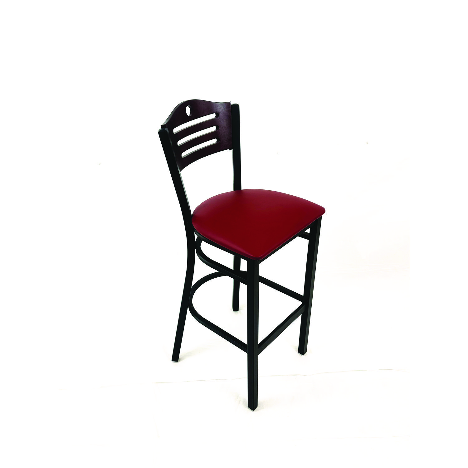 Eagle Series Barstool, Supports Up to 300 lb, 28.5″ Seat Height, Burgundy Seat, Dark Mahogany Back, Black Base