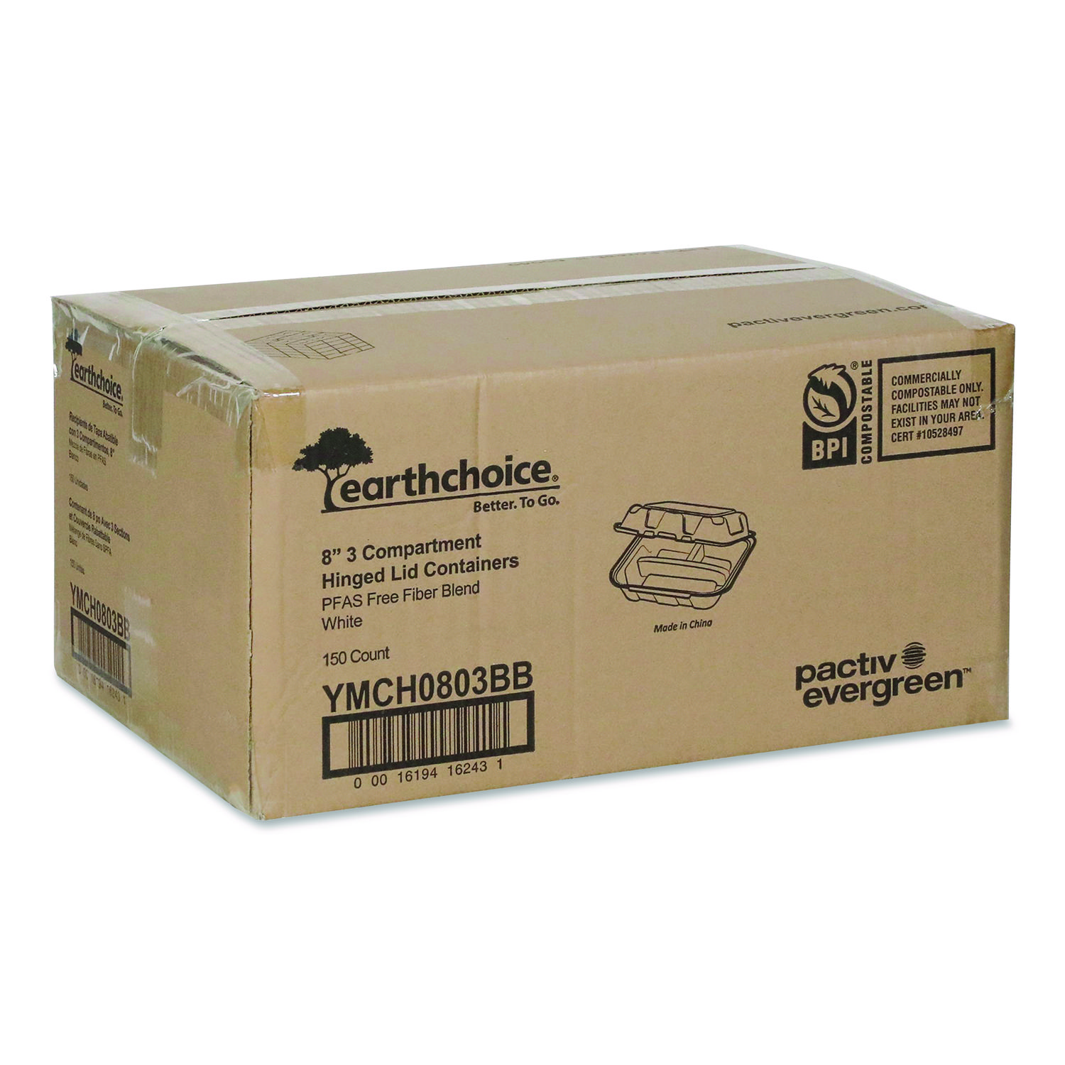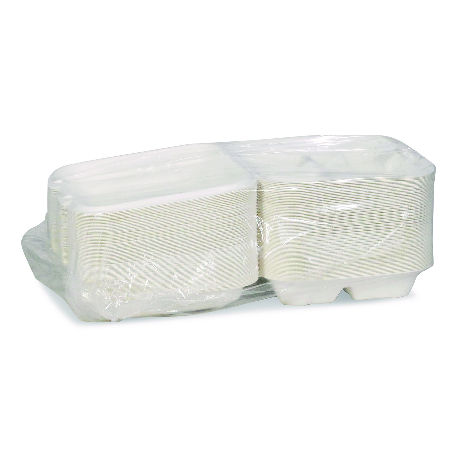 EarthChoice Bagasse Hinged Lid Container, 7.8 x 7.8 x 2.8, White, 150/Carton