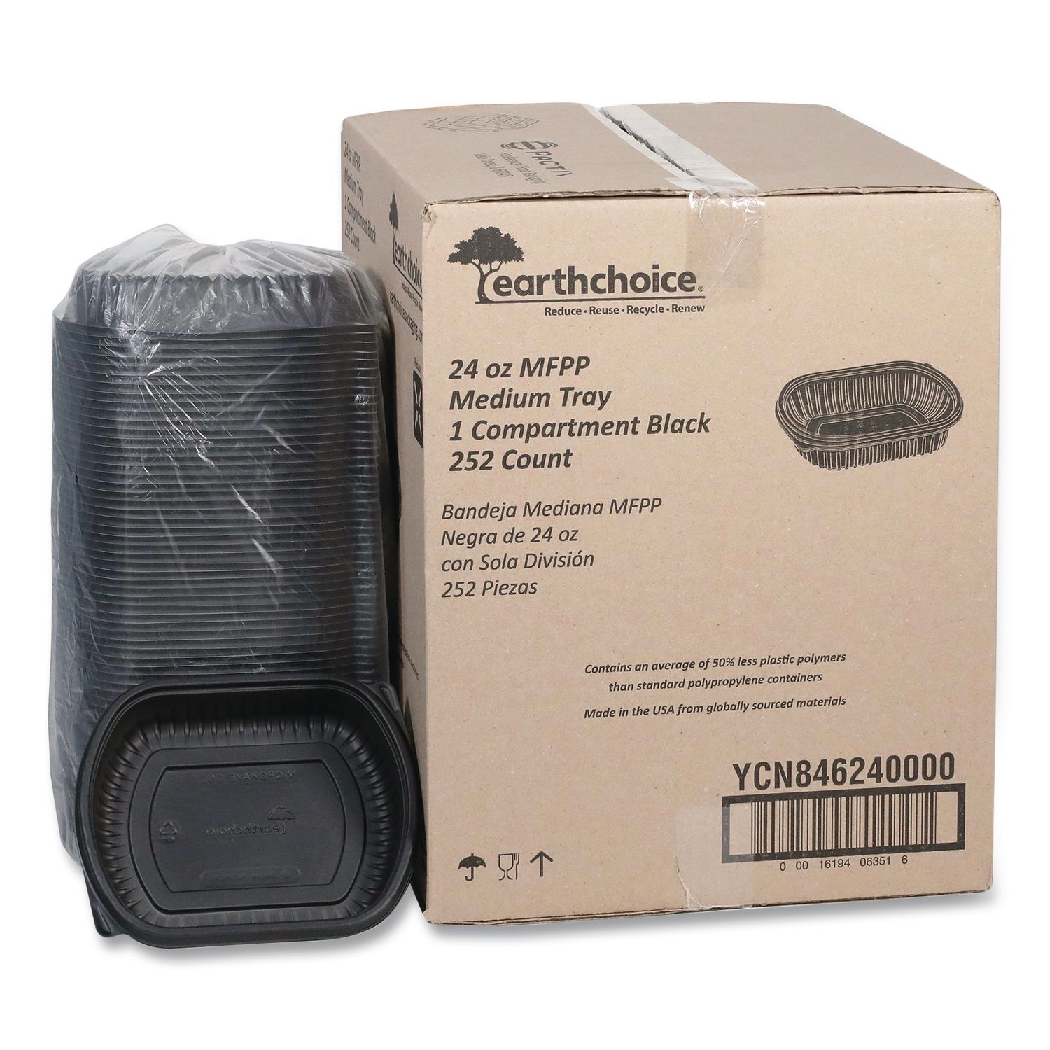 EarthChoice MealMaster Container, 24 oz, 8.12 x 6.5 x 1.5, Black, Plastic, 252/Carton