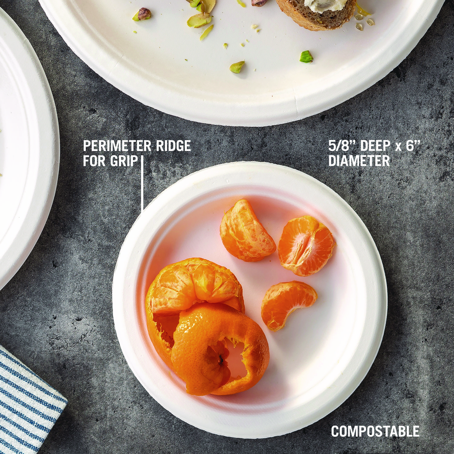 You need the right food-packaging products to keep your operations running smoothly and to keep your customers happy. Choose EarthChoice fiber-blend bagasse dinnerware to help meet your sustainability goals. They’re compostable yet durable, super sturdy, and moisture-resistant. Commercially compostable only. Facilities may not exist in your area. Not suitable for home composting. Dinnerware Type: Plate; Material Type: Sugarcane; Material(s): Molded Fiber; Shape: Round.