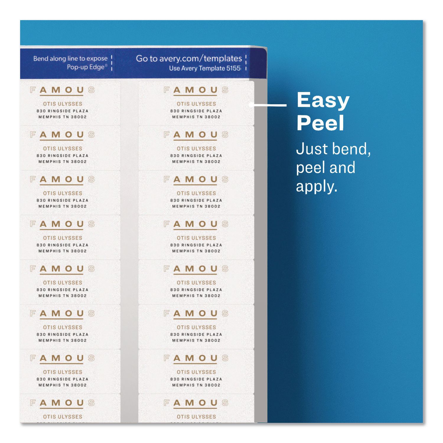 Do your packages and envelopes need a shot of sophistication? These matte clear return address labels are the clear choice for sprucing up ordinary envelopes and packaging. The labels basically disappear when applied to white, light-colored or textured paper. Use these clear labels on vellum envelopes and glassine bags to create a printed-on appearance. These labels also feature exclusive Sure Feed® technology to improve print alignment and avoid jamming. The blue, textured strip on the top of each sheet provides better grip for printer rollers and helps feed the sheet through your printer. Shape: Rectangular; Label Size – text: 0.66″ x 1.75″; Label Color(s): Matte Clear; Color Family: Clear.