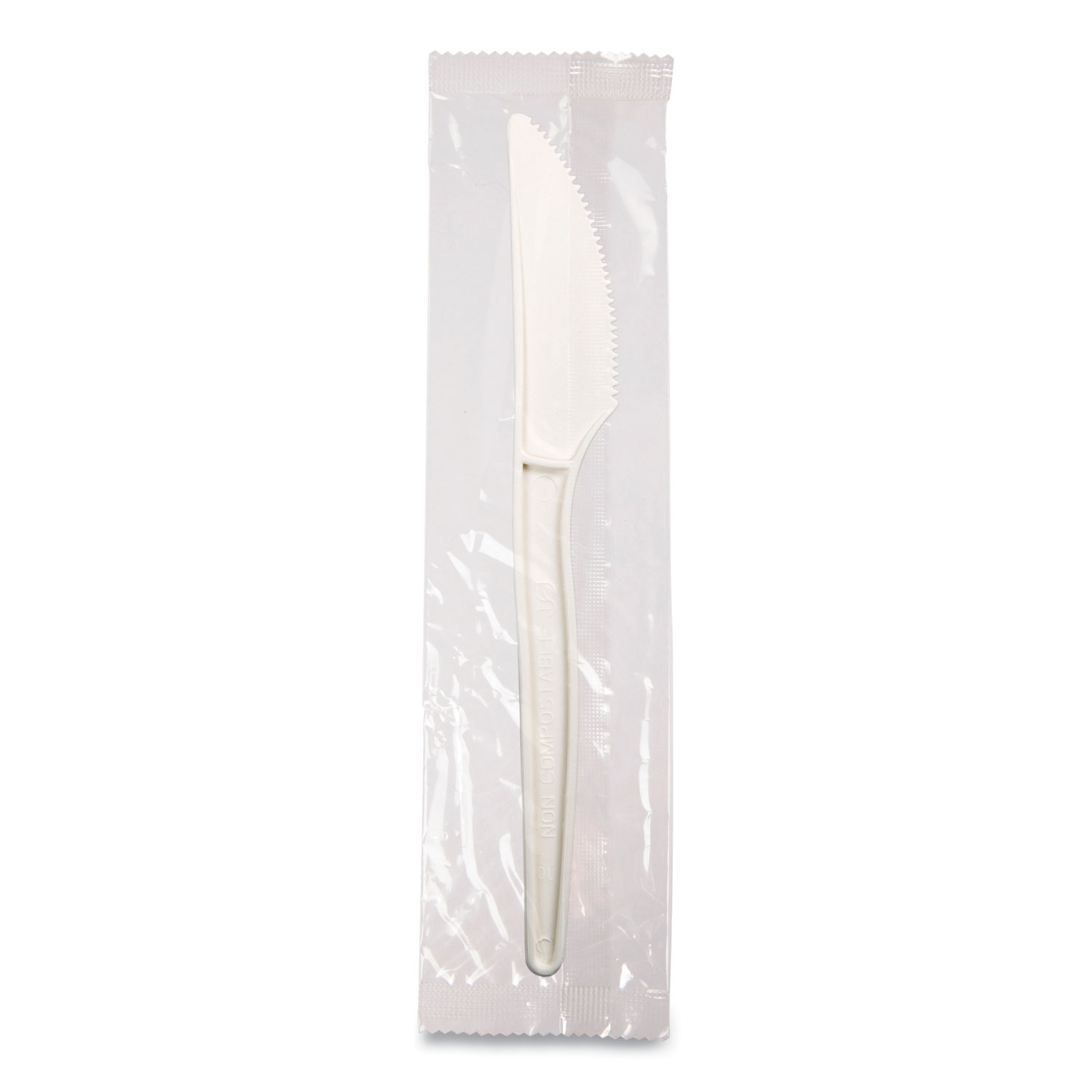 EcoSense Renewable Plant Starch Cutlery, Individually Wrapped, Mediumweight Knife, Plastic, Natural, 750/Carton