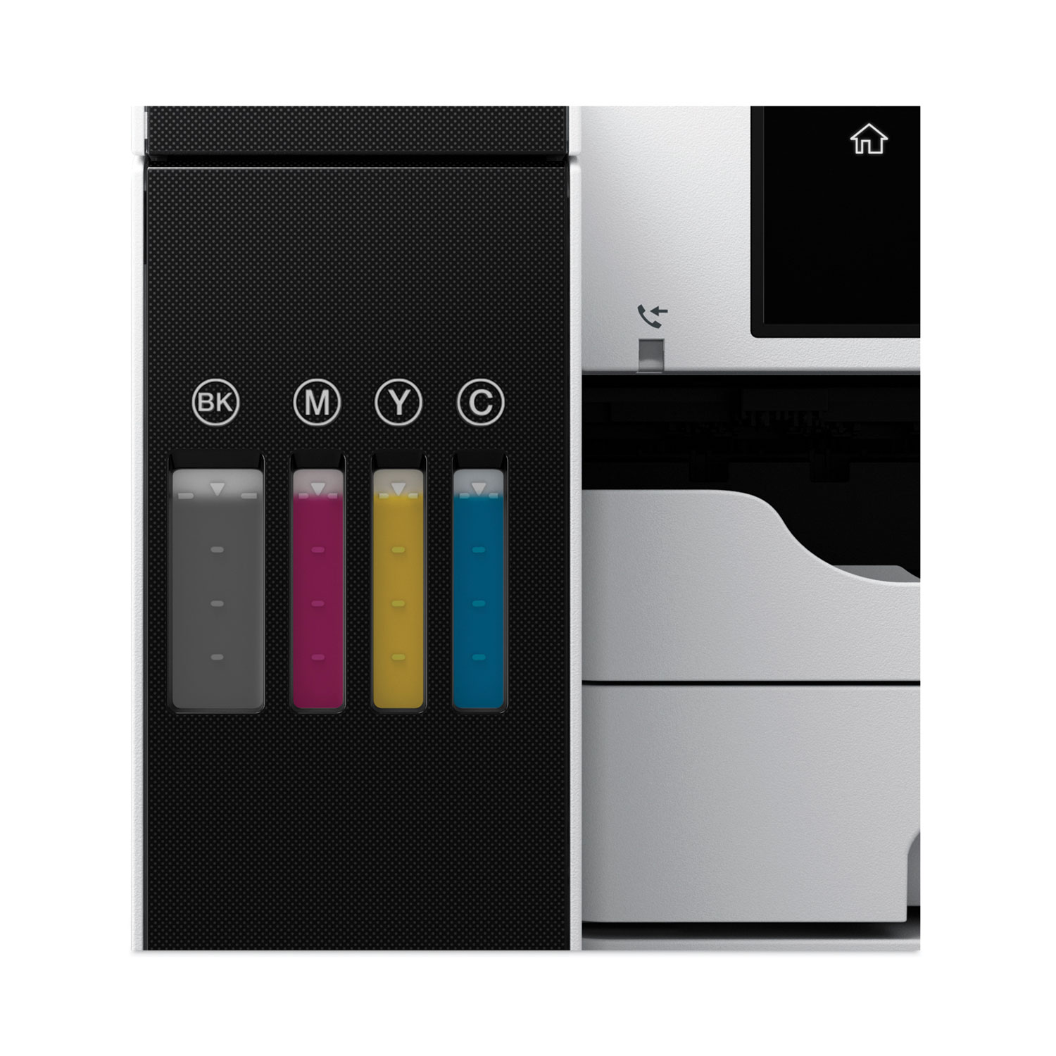 The EcoTank Pro ET-5850 wireless all-in-one offers fast cartridge-free printing with easy-to-fill supersized ink tanks. You can save up to 80 percent with low-cost replacement ink bottles vs. standard-capacity color laser toner cartridges—about 2 cents per color ISO page versus 14 cents with cartridges. PrecisionCore® Heat-Free Technology delivers high-volume, print-shop-quality output. Epson® DURABrite® pigment-based ink delivers vibrant borderless prints up to 8.5″ x 14″. Each replacement ink set includes enough ink to print up to 6,000 pages. Plus, there’s zero cartridge waste and very low energy consumption. The ET-5850 features a large paper capacity with front trays and rear specialty-paper feed, plus a 4.3″ color touchscreen and hands-free voice-activated printing. Machine Functions: Copy; Fax; Print; Scan; Printing Type: Wide Format Inkjet; Maximum Print Speed (Black): 25 ppm; Maximum Print Speed (Color): 25 ppm.