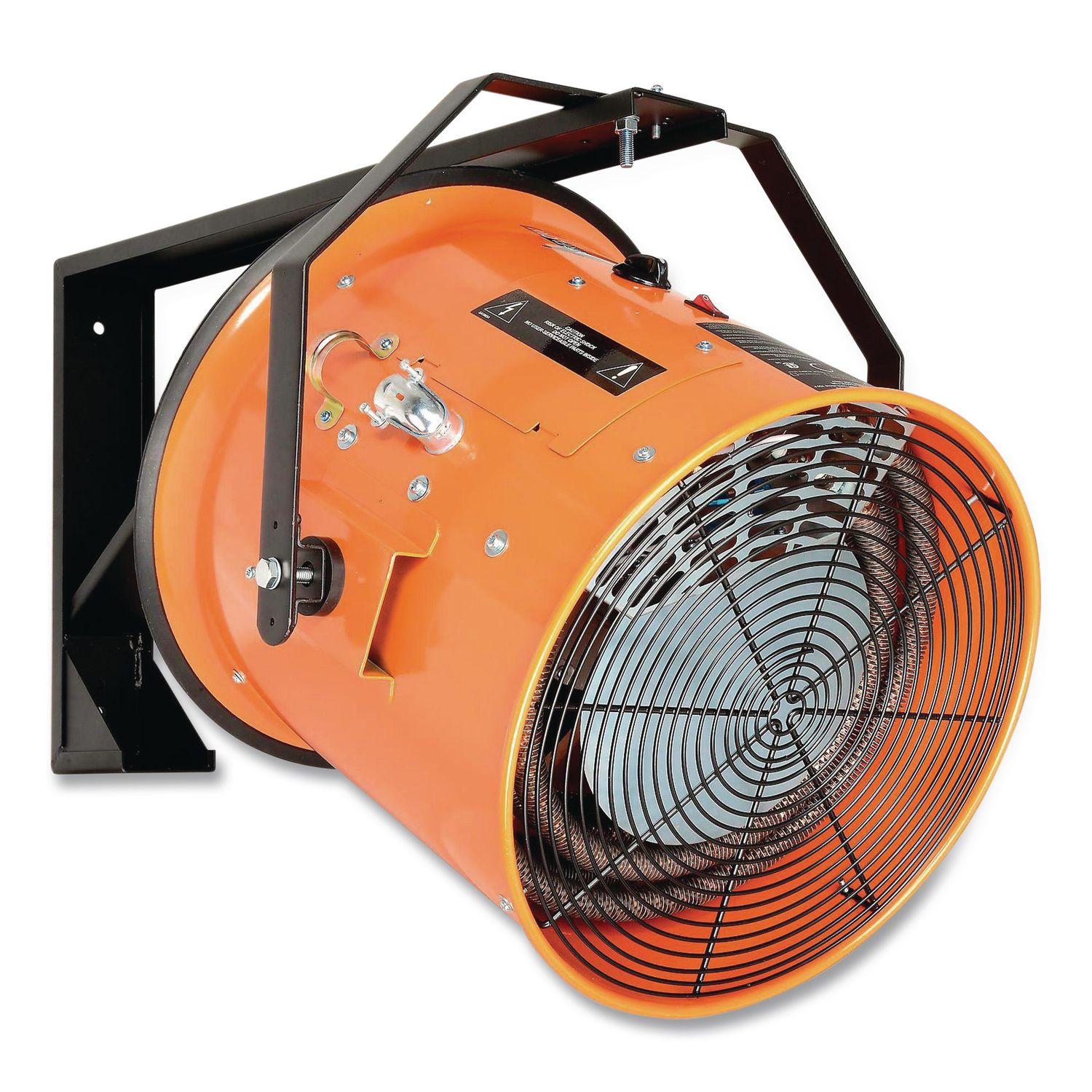 These heaters are used in factories, garages, workshops, and other places where temporary localized heat is needed. These convection heaters raise temperatures gradually to a comfortable level. Heaters are electric and have finned tubular heating elements positioned in front of a fan unit to provide even distribution of heat. Electric heaters eliminate combustion by products associated with fuel-fired heaters. Tubular steel frame offers long lasting durability in demanding environments. Swivel mounting bracket allows for wall or ceiling installation with included hardware to direct heat where needed. On/off switch and adjustable thermostat control knob are mounted on the top of the unit. High-limit thermal cutout switch provides ease of use. Requires 50 A circuit breaker. Wall heaters are designed for direct wire installation. Access panel allows direct wiring connections. Power cord is included. Heater Type: Salamander Heater; Safety Features: Safety Tip-Switch; Thermal Cut-Off Protection; Setting Range [Max]: 15,000 W; Oscillation: No.