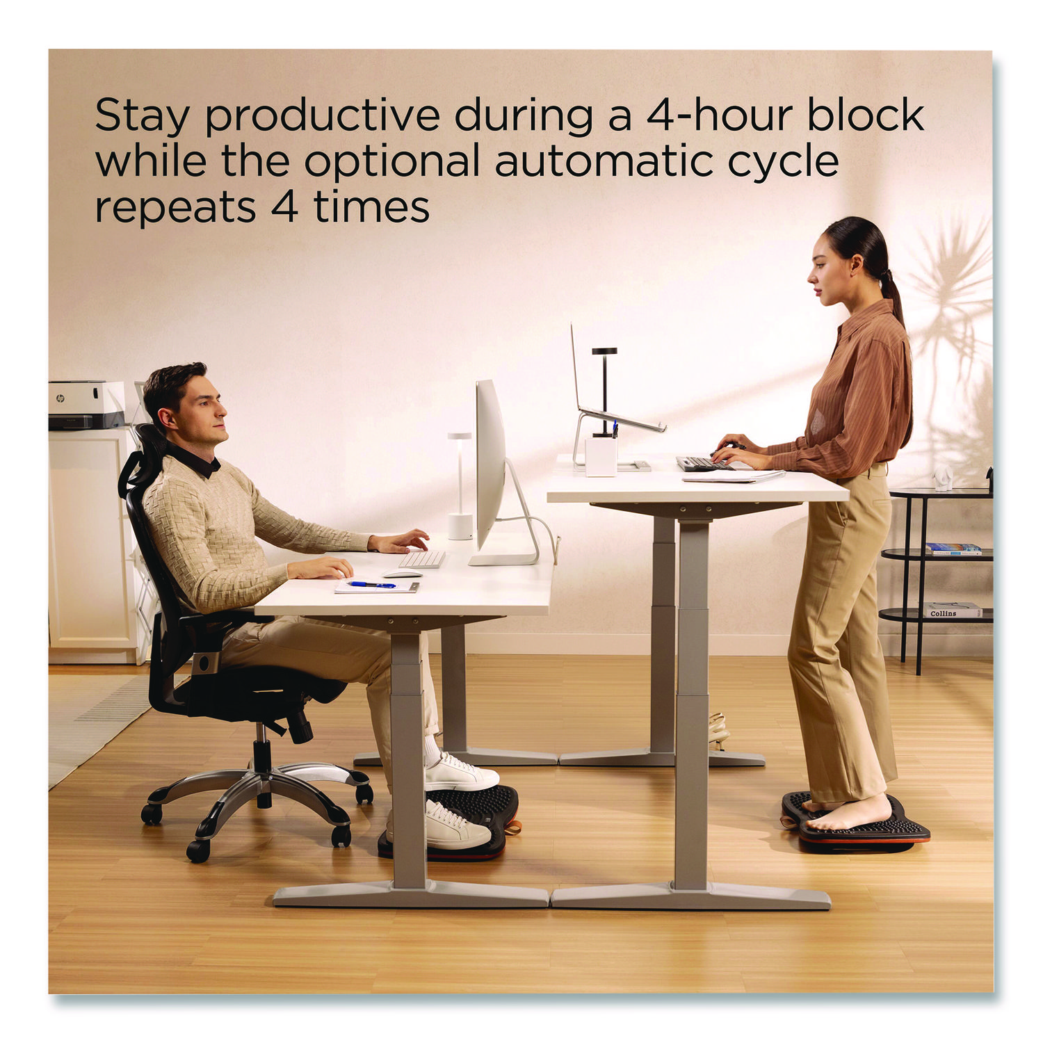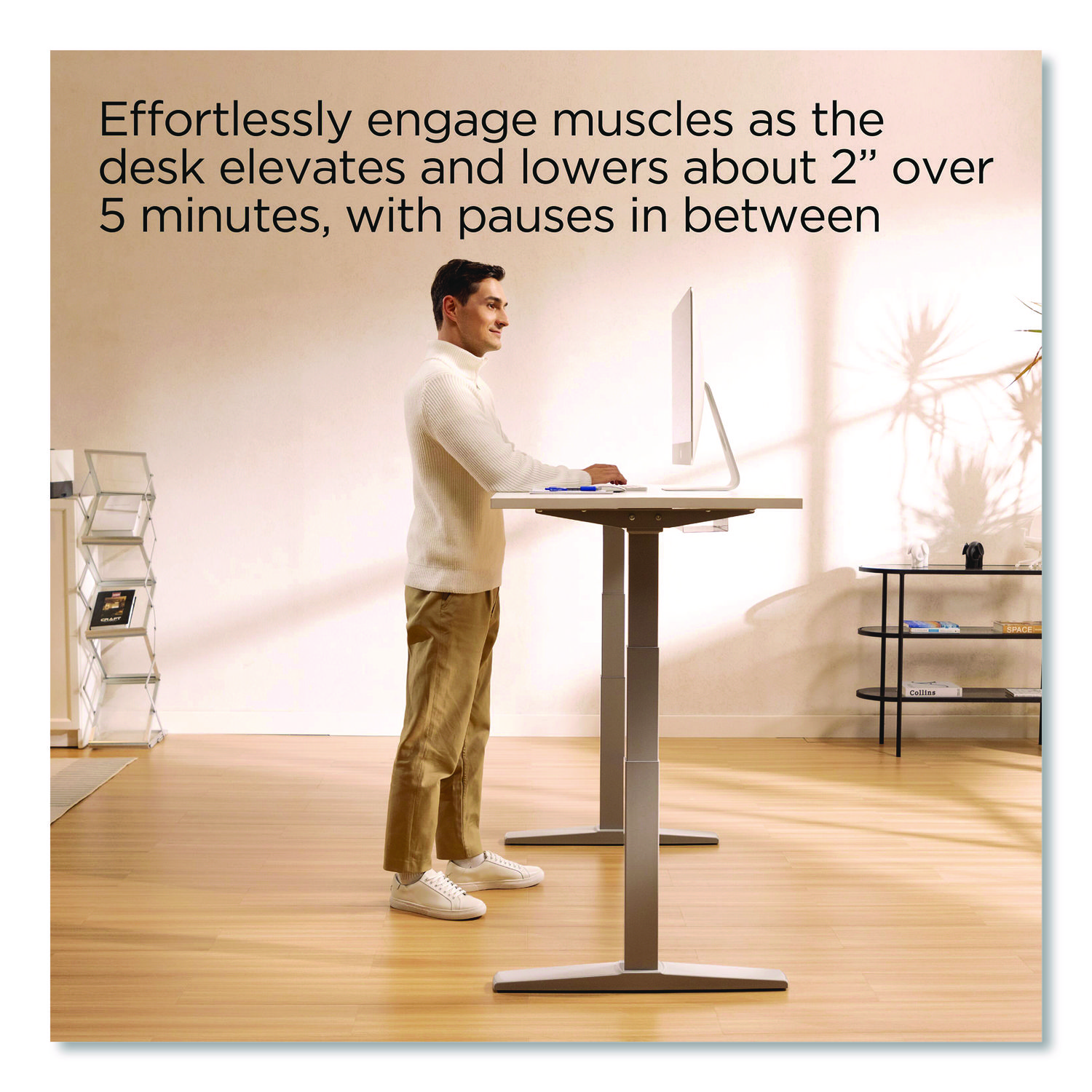 Experience the future of ergonomics and take workplace wellness to the next level. For those who prefer standing, two anti-collision electric motors and two user-height presets simplify shifting from sitting to standing and back. And for those who prefer sitting, this desk’s cutting-edge Micromovement functionality raises the worksurface 2.36″ inches over five minutes to encourage subtle shifts in posture and muscle engagement; and after reaching its peak height, the motor pauses for two minutes before gradually lowering back down to allow your body to rest and reset before the next cycle begins. To perfectly align with a four-hour block of focused work, when activated, the Micromovement functionality’s cycles are preprogrammed to repeat four times within a 48-minute period. Whether you prefer standing or sitting, this contemporary desk’s advanced technology is poised to boost productivity, reduce fatigue and improve overall well-being. Worksurface/Base Color: White/Gray; Color Family: White; Worksurface Shape: Rectangular; Worksurface Material: Laminate.