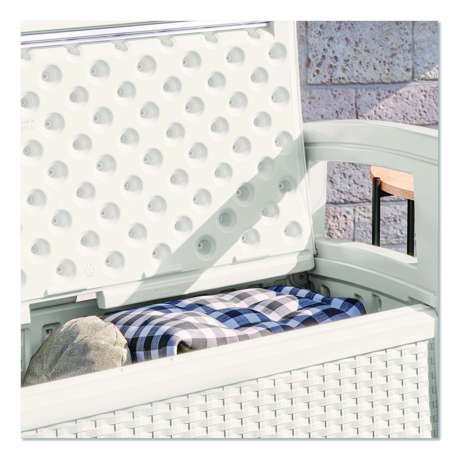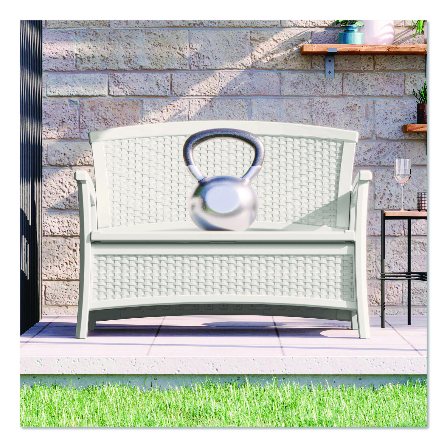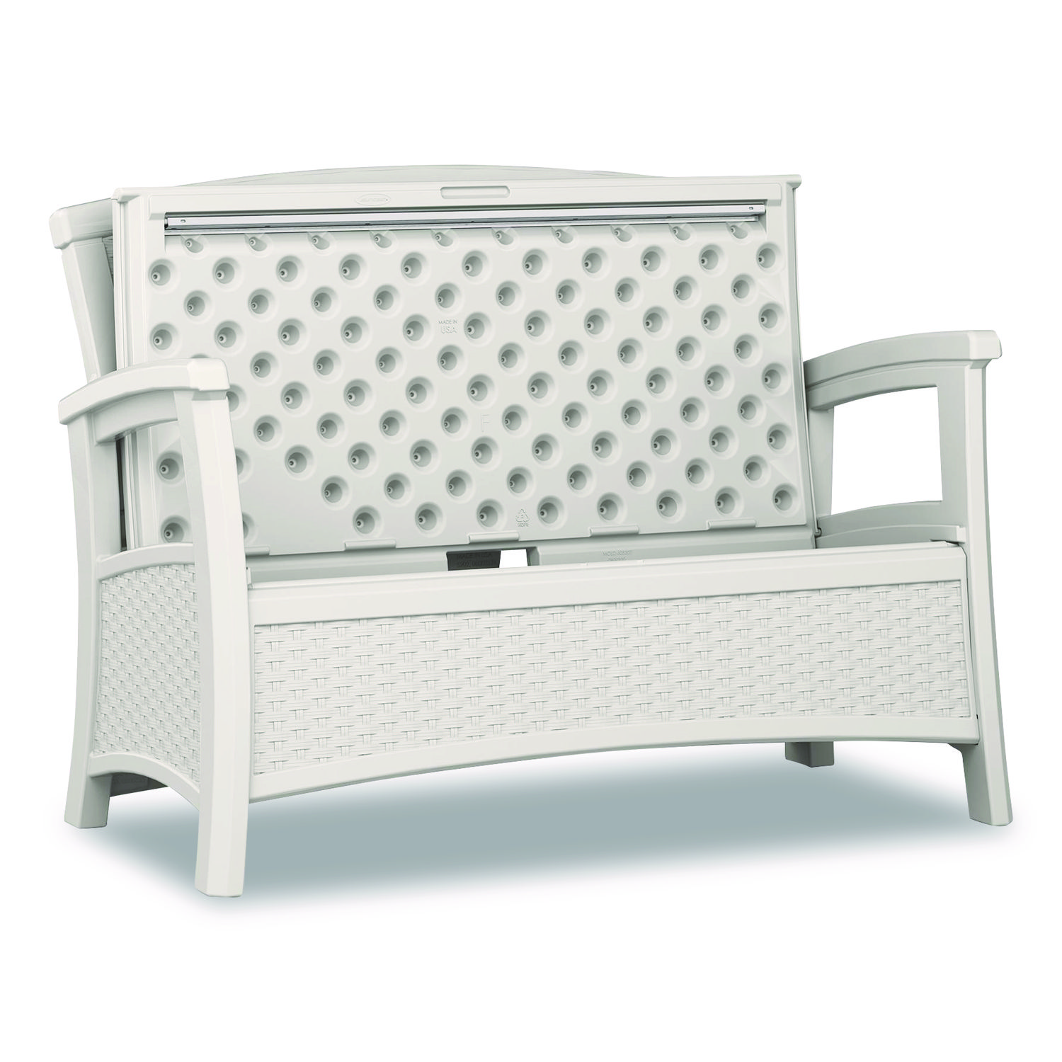 Need a stylish outdoor seating and storage solution for your patio, porch, deck, or backyard? The Suncast® Elements® Love Seat is what you need. This loveseat has a beautiful wicker pattern to complement any décor, plus the seat has built-in storage. Featuring durable, multi-wall resin construction, this loveseat is designed for year-round use and easy maintenance. Seat Color: Ice Cube; Color Family: White; Back Color: Ice Cube; Base/Frame Color: Ice Cube.