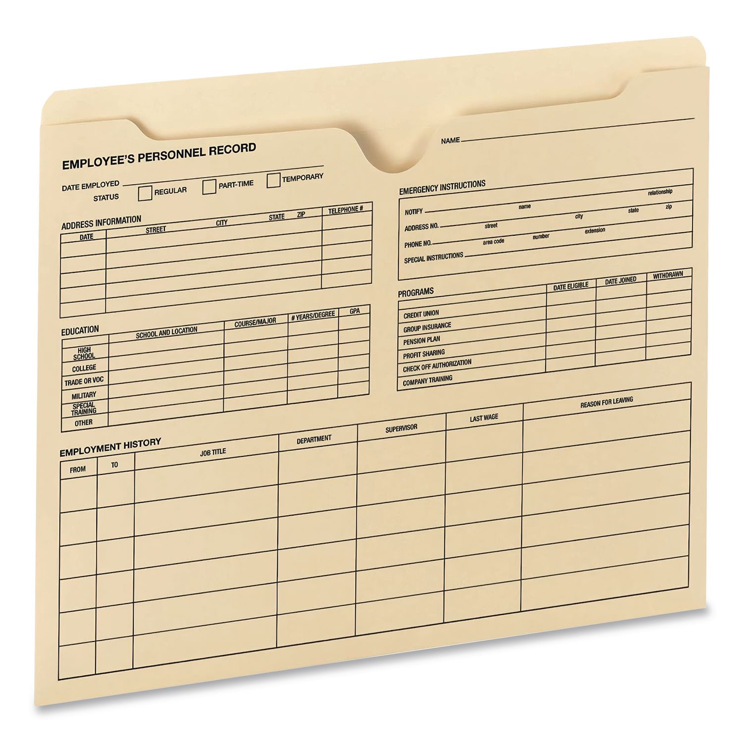 Employee Record Jacket, Straight Tab, Letter Size, Manila, 100/Box