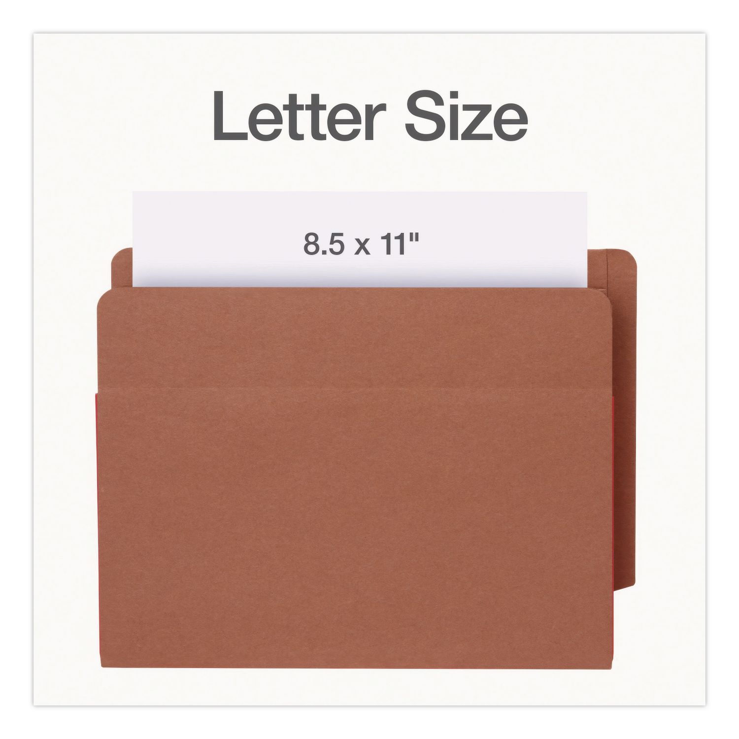End Tab File Pocket, Red Gusset, 3.5″ Expansion Letter Size, Brown/Red, 10/Box