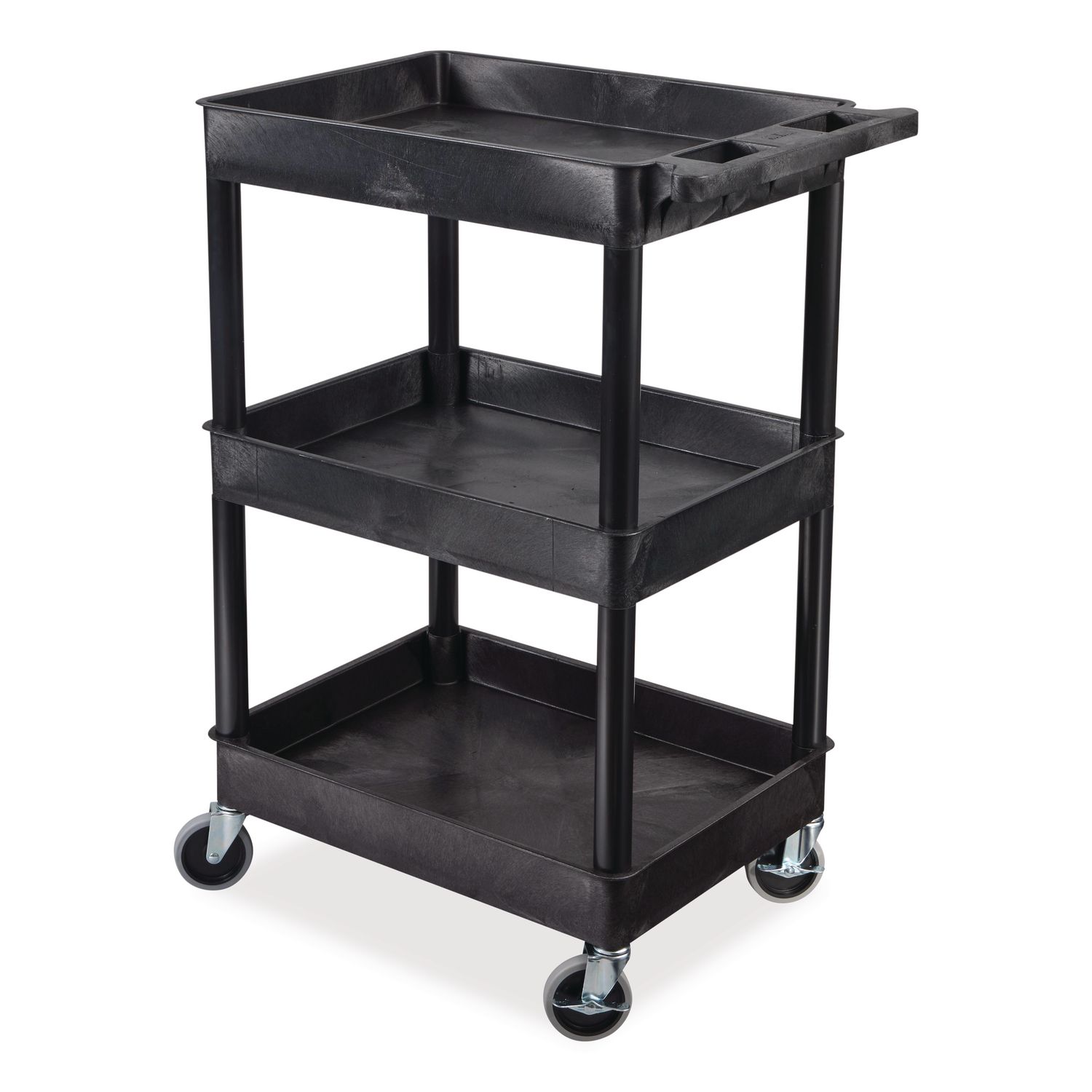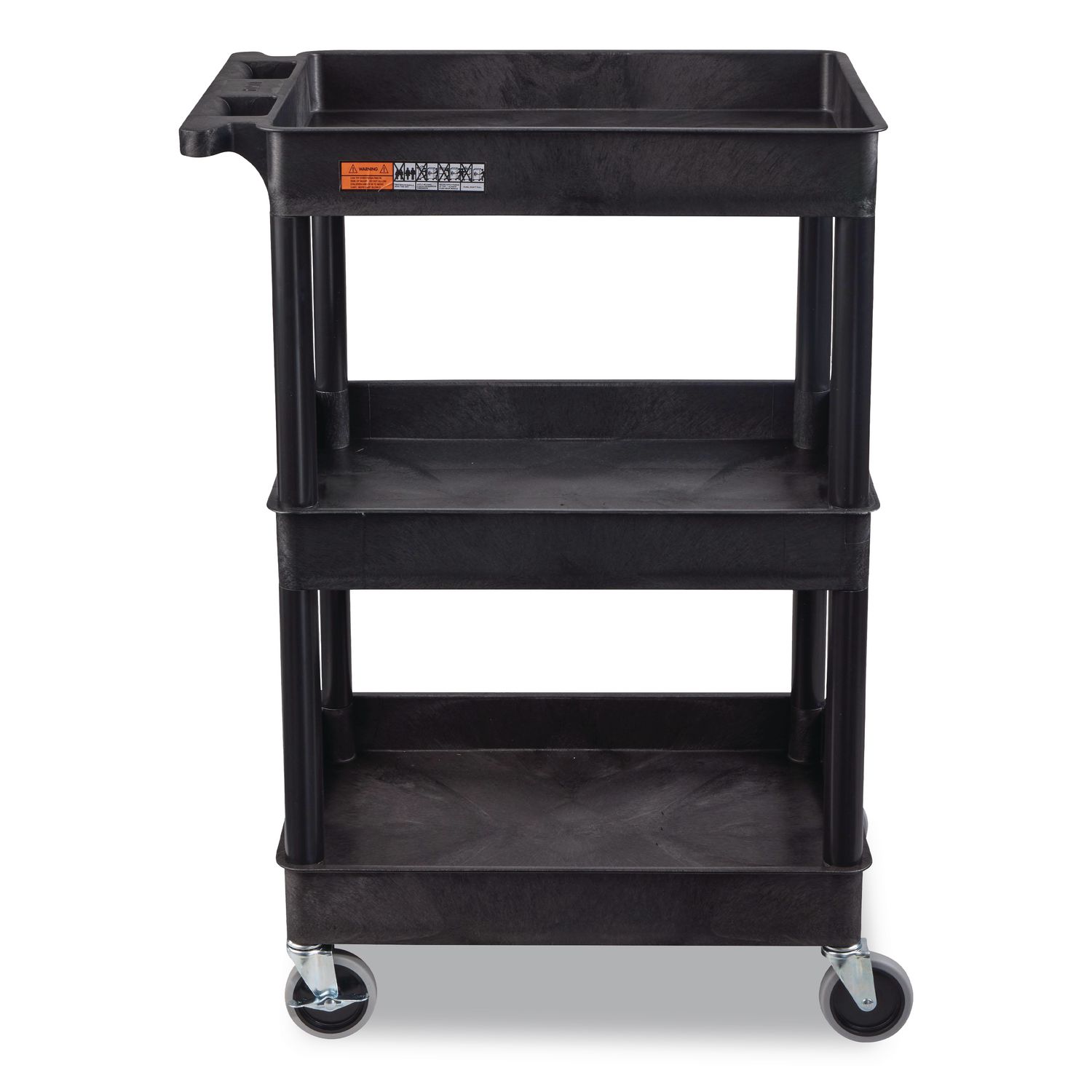 ENDURA Three-Shelf Utility Cart, Plastic, 300 lb Capacity, 26.5″ x 18.5″ x 39.25″, Black