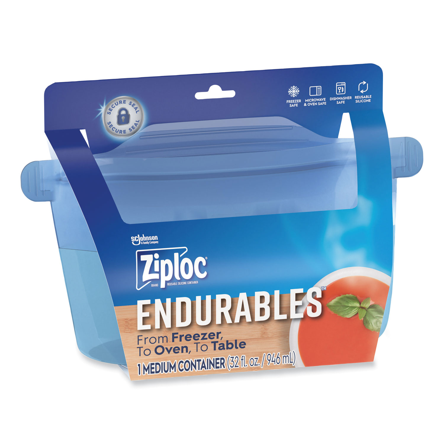 Designed to go from freezer to oven to table, these reusable silicone containers will quickly become one of your favorite cooking, storage, and food prep friends. Meals you store in the fridge or freezer will retain their freshness and flavor for longer. This product is made from platinum silicone which means you can reuse to save money and waste less. Endurables can handle extreme temperatures from freezing, all the way up to 425°F. Whether your recipe calls for the oven, microwave, or stove top, Cool Grab Tabs help to keep your hands safe from heat. Easy Open Tabs make accessing your food a breeze. Endurables are also dishwasher friendly and a convenient way to prep and transport food on-the-go. Food Container Type: Base; Material(s): Silicone; Material Type: Silicone; Interior Volume Capacity: 4 Cups.