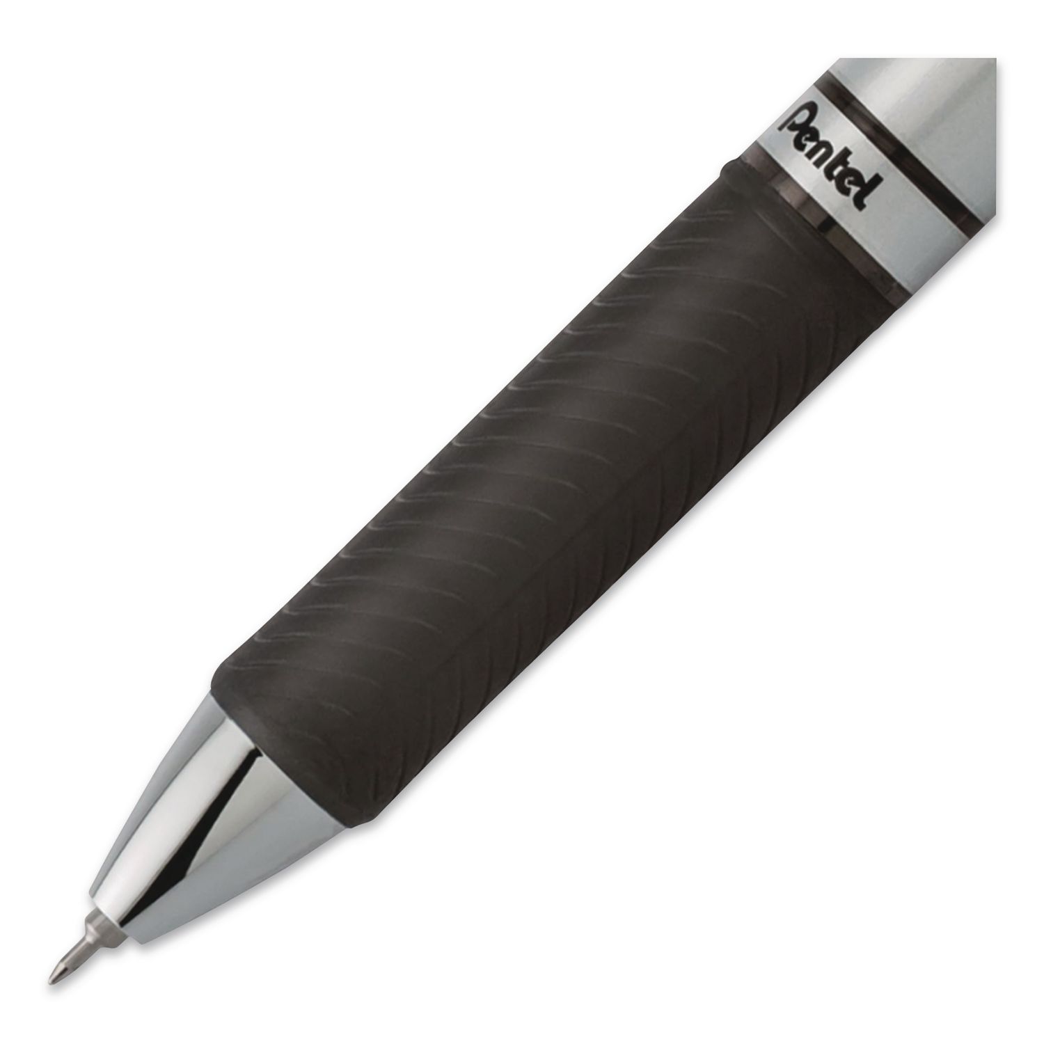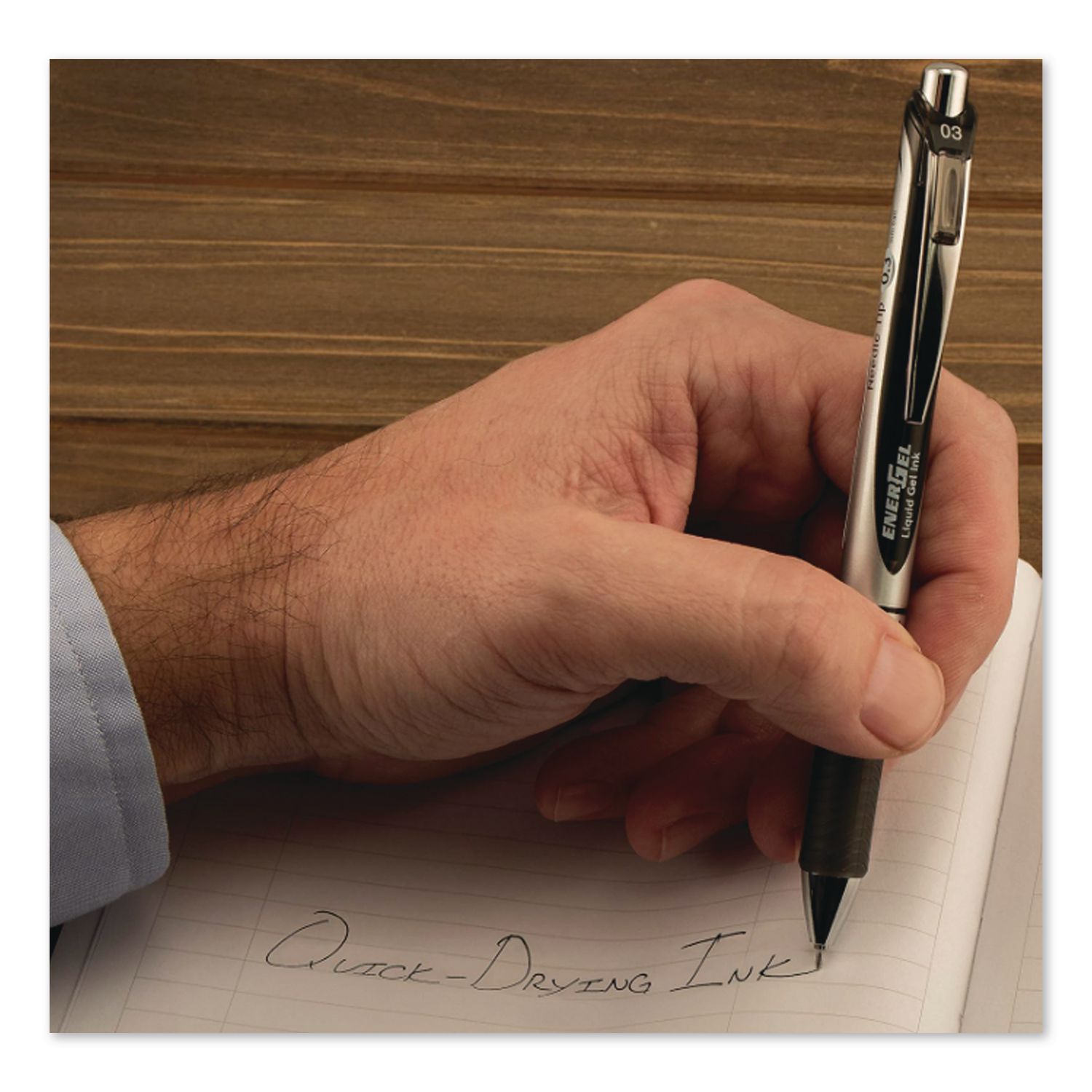 EnerGel RTX Gel Pen, Retractable, Extra-Fine 0.3 mm, Black Ink, Black/Silver Barrel, Dozen