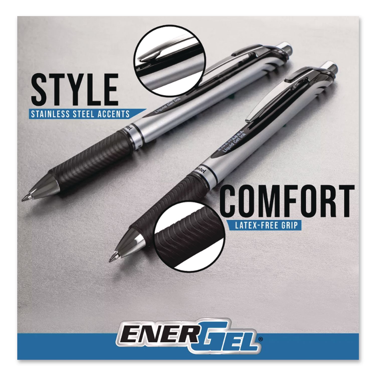 Make your everyday writing tasks more enjoyable with Pentel® EnerGel® RTX Retractable Liquid Gel Pens. High performance ink technology combines the best qualities of liquid and gel inks for a super-smooth writing experience, and its quick-dry qualities make it ideal for left handers—No Smears, No Smudges, No Globs. Its sleek, stylish barrel with stainless steel accents provides a distinctive, professional appearance, while its cushioned, latex-free grip delivers extra comfort and greater control. Refillable with any EnerGel® ink refill. Pen Sub-Brand & Product Family: EnerGel® RTX; Pen Type: Gel Pen; Pen Style: Retractable; Pen Tip Type: Conical.