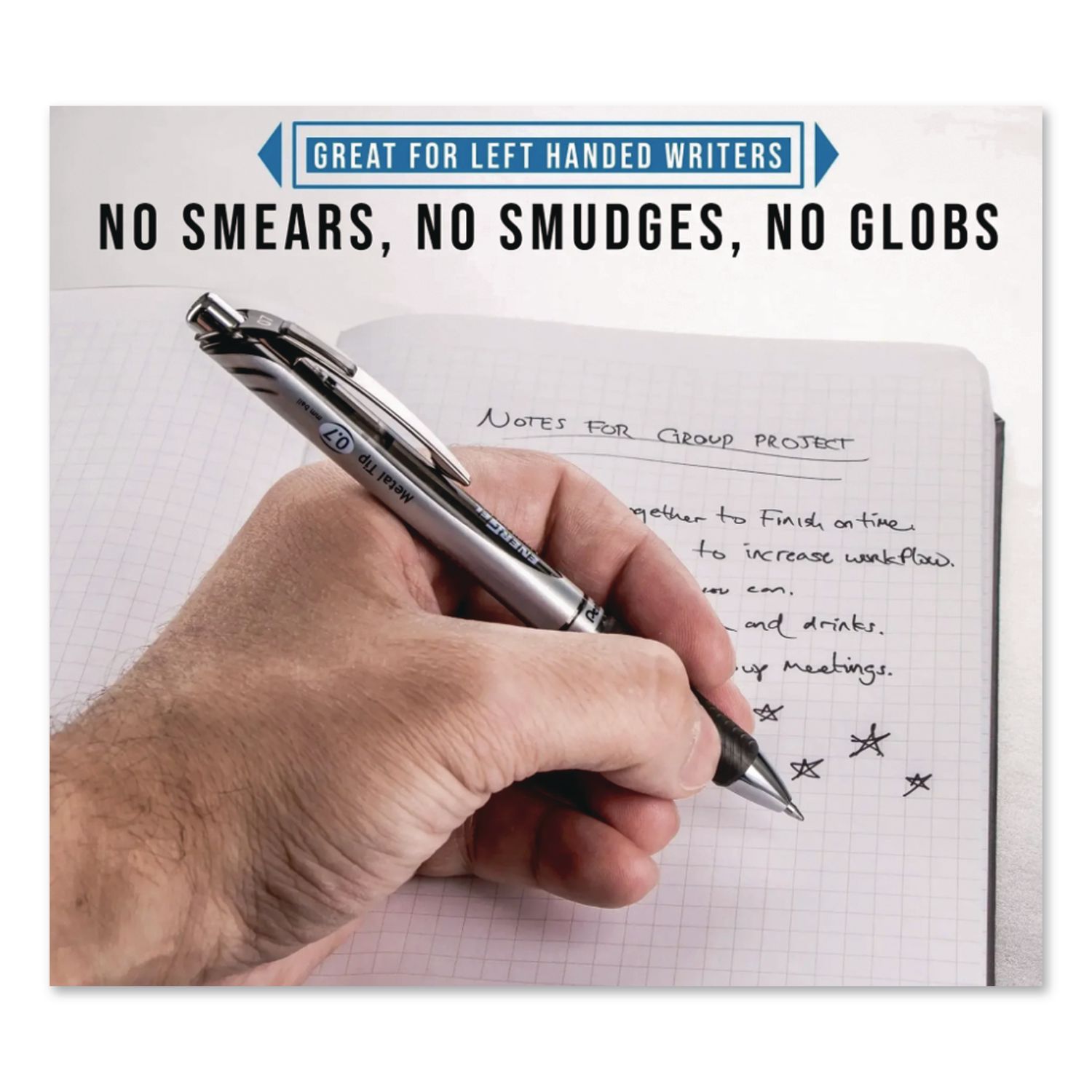 Make your everyday writing tasks more enjoyable with Pentel® EnerGel® RTX Retractable Liquid Gel Pens. High performance ink technology combines the best qualities of liquid and gel inks for a super-smooth writing experience, and its quick-dry qualities make it ideal for left handers—No Smears, No Smudges, No Globs. Its sleek, stylish barrel with stainless steel accents provides a distinctive, professional appearance, while its cushioned, latex-free grip delivers extra comfort and greater control. Refillable with any EnerGel® ink refill. Pen Sub-Brand & Product Family: EnerGel® RTX; Pen Type: Gel Pen; Pen Style: Retractable; Pen Tip Type: Conical.