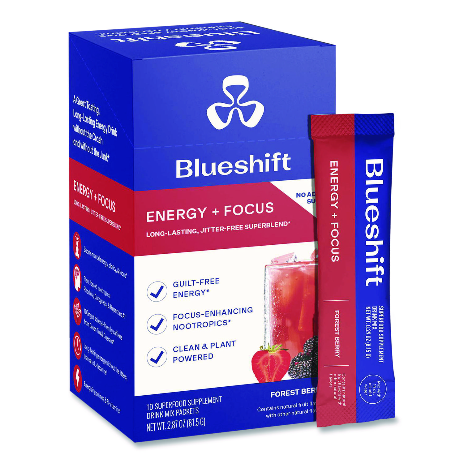 A great tasting, long-lasting energy drink without the crash and without the junk. Enjoy jitter-free energy and laser-sharp focus without overwhelming your adrenals by leveraging the natural power of plants, aminos and b-vitamins. Beverage Type: Energy Drink Mix; Flavor: Forest Berry; Product Packaging: Packet; Capacity (Weight): 0.24 oz.