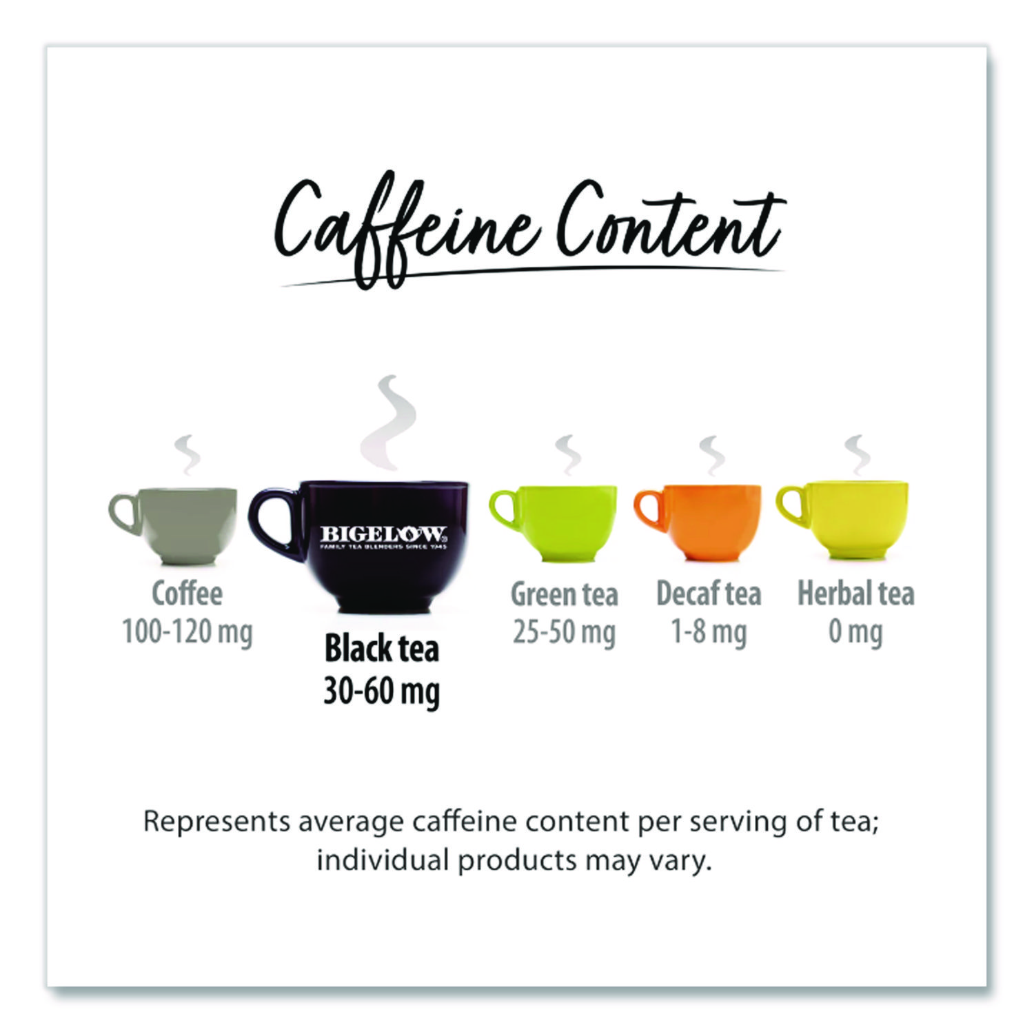 Sipped throughout the day, black tea quenches, soothes and satisfies while also providing your body with important antioxidants. Few drinks can invigorate the body so well and also deliver such a bold, full-bodied, savory flavor. Because Bigelow® only uses the finest mountain-grown black tea leaves, you can be sure that you’re serving one of the best of its kind. Beverage Type: Black Tea; Flavor: English Teatime®; Product Packaging: Tea Bag; Capacity (Weight): 0.08 oz.