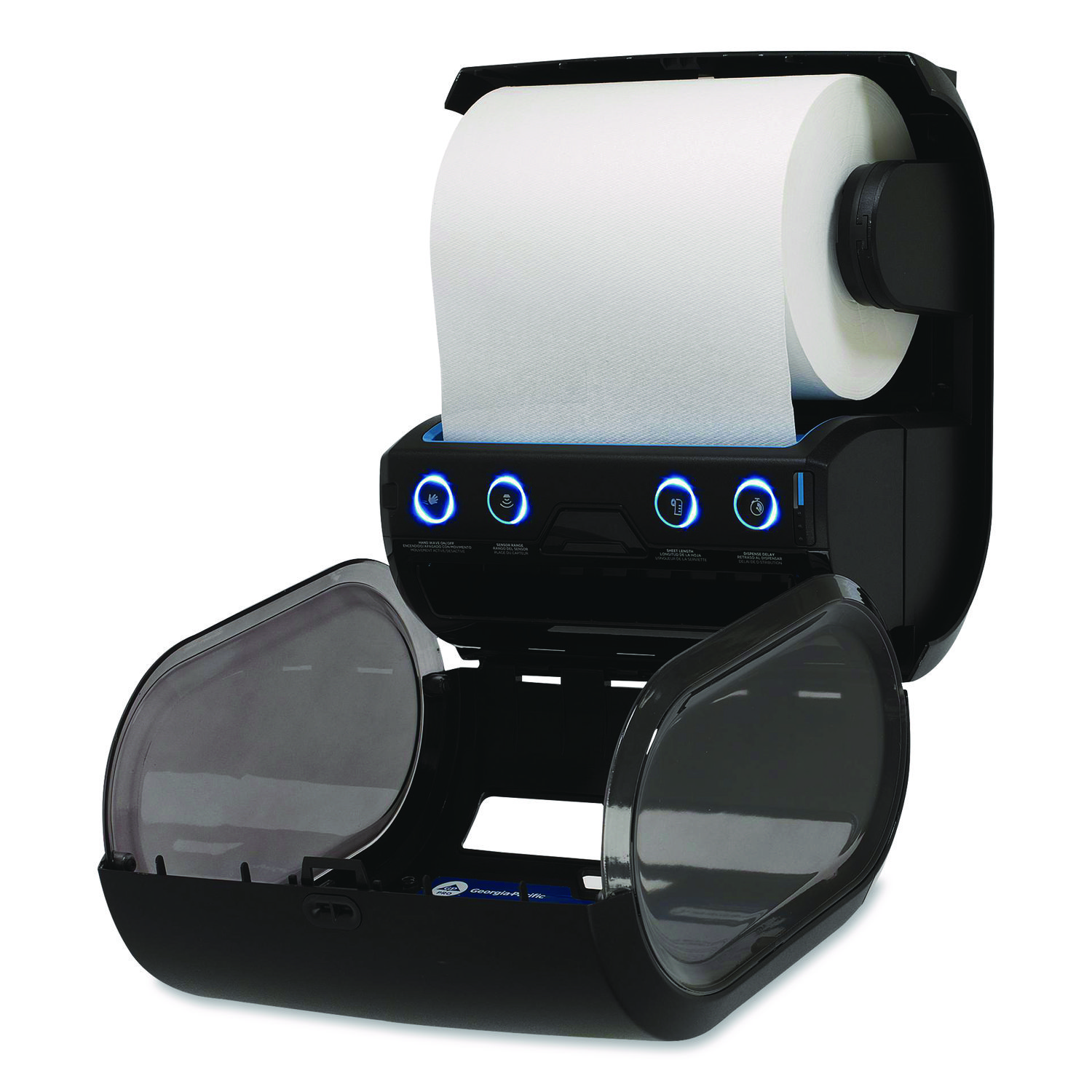 The intuitive design of enMotion® Flex makes it easy to train custodial staff and helps make refilling easy. Auto-feed feature grabs and guides paper towel, and makes loading easier for clean teams. Customizable settings including delay, sheet length and dispense mode to meet your specific needs. Color-coded indicators make loading intuitive. Towels Dispensers Type: Roll Towel Dispenser; Dispenser Capacity (text): One Roll; Material(s): Plastic; Color(s): Black.