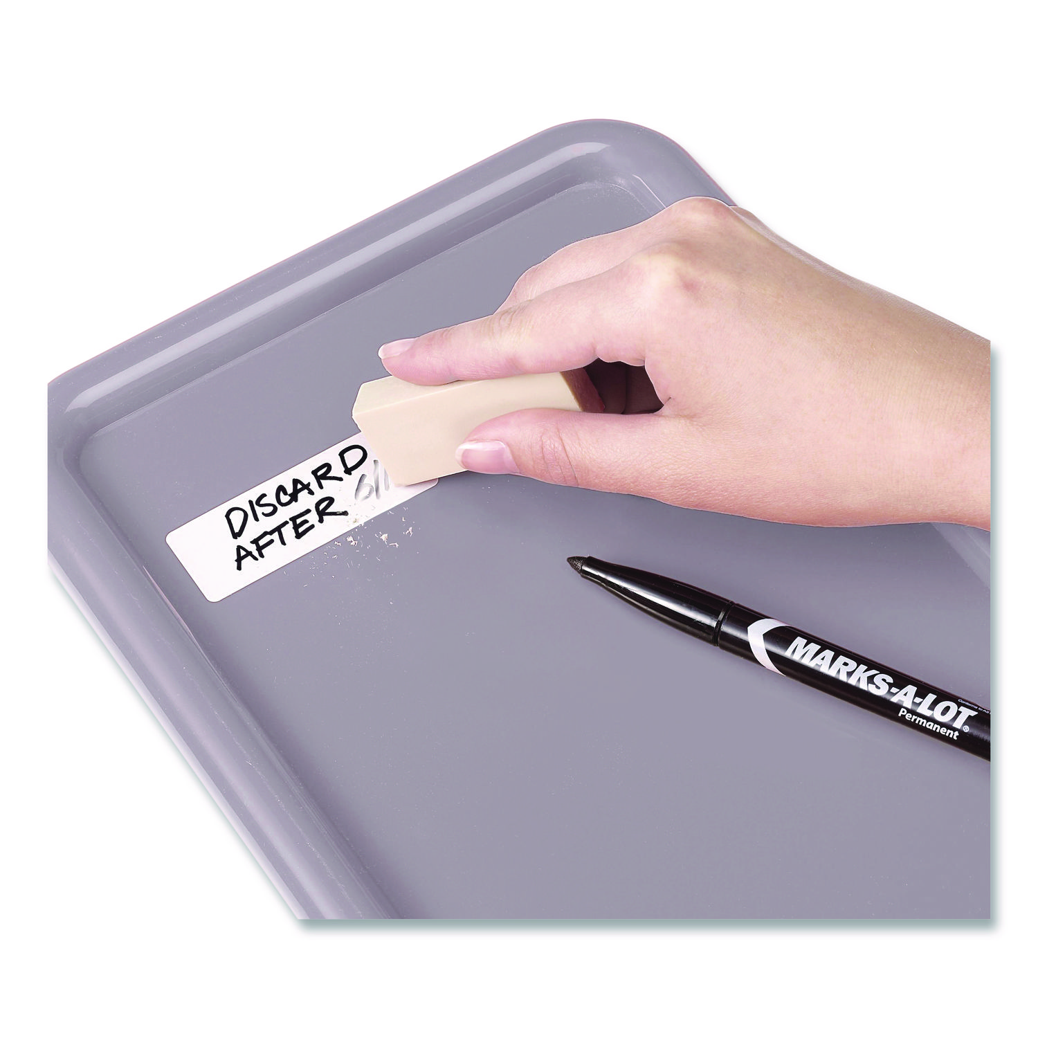 Erase permanent marker with a white eraser. Won’t smear or smudge. Shape: Rectangular; Label Size – text: 0.88 x 2.88; Label Color(s): White; Color Family: White.